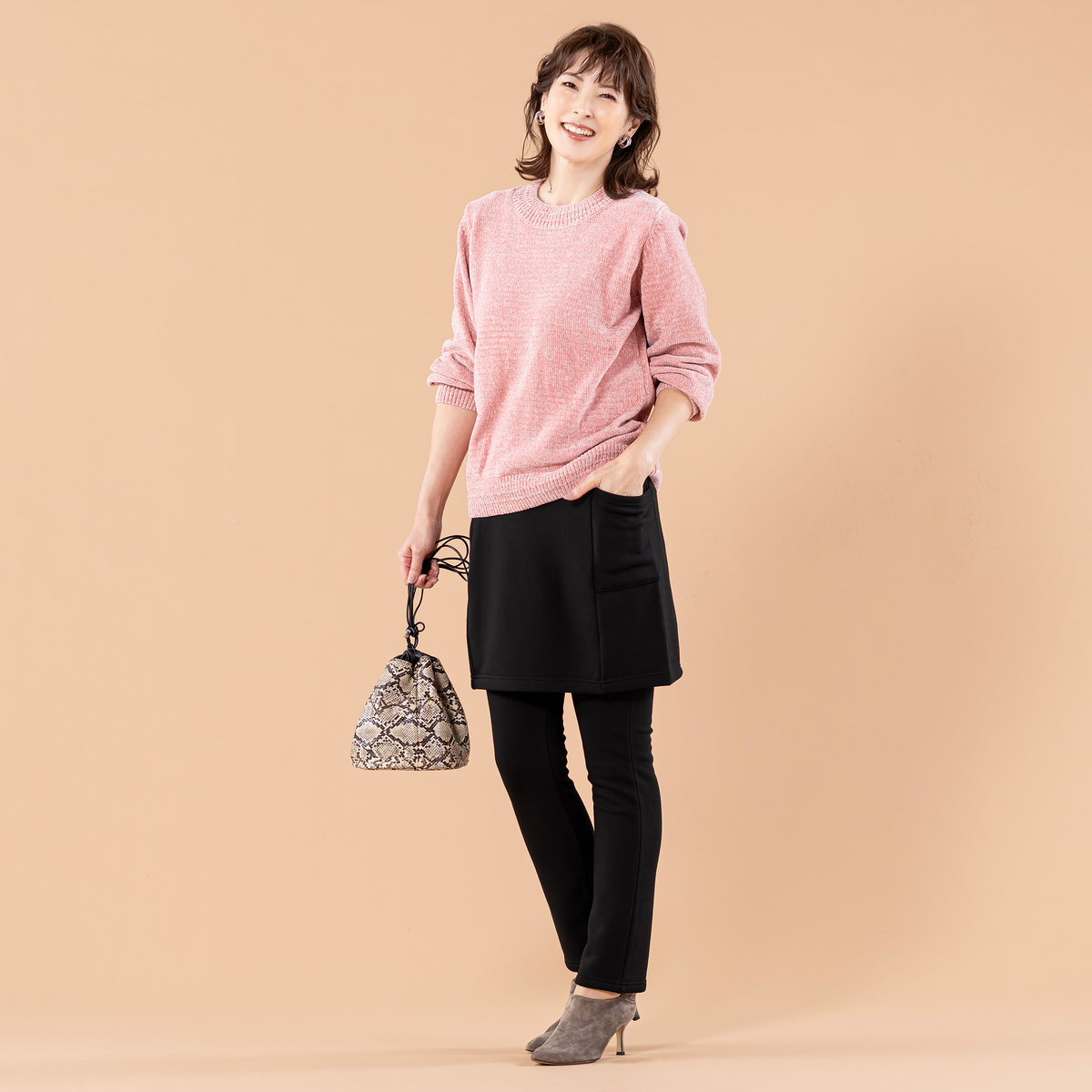 毛足のあるモールヤーンを使用したニットプルオーバー。どの角度から見てもおしゃれ感のある立体フォルムで、すっきり着こなせるようフロントはやや短めに仕上げました。ふんわり軽やかな着心地で、ゆとりのあるシルエットが大人のこなれ感を演出します