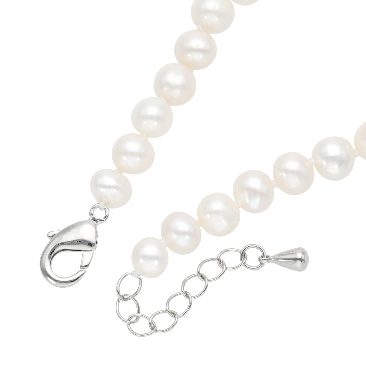 素材:[淡水パール] 6.0〜7.0mmUP 不定形 貫通(オールノット) 総重量(約) 10.9g 長さ(約) 18.0〜20.5cm 幅(約) 大:7.0mm 小:6.0mm(不定形) 留具の形状 ロブスター アジャスターの有無 有 チャームの有無 無 [地金] 合金 [メッキ] シルバーカラーメッキ ■素材の大きさ・形・色合い、製品のサイズは1点1点多少異なります 【中国製】