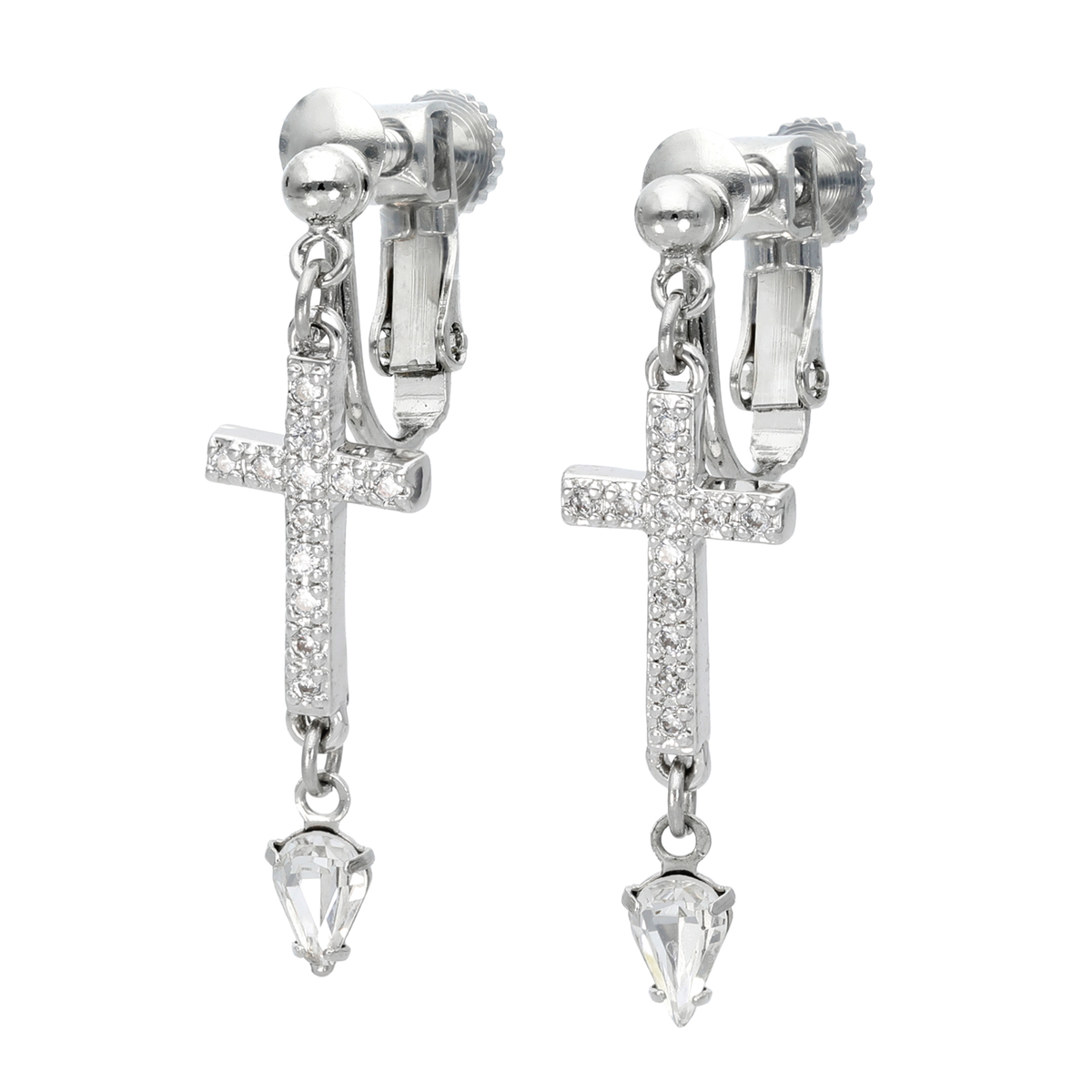 クロスモチーフが印象的なチェーンネックレスとイヤリングまたはピアスのセットです。キュービックジルコニアを敷き詰めたクロスモチーフが上品な輝きを演出。シンプルなデザインでどんなコーディネートにも合わせやすく、華やかさをプラスしてくれます