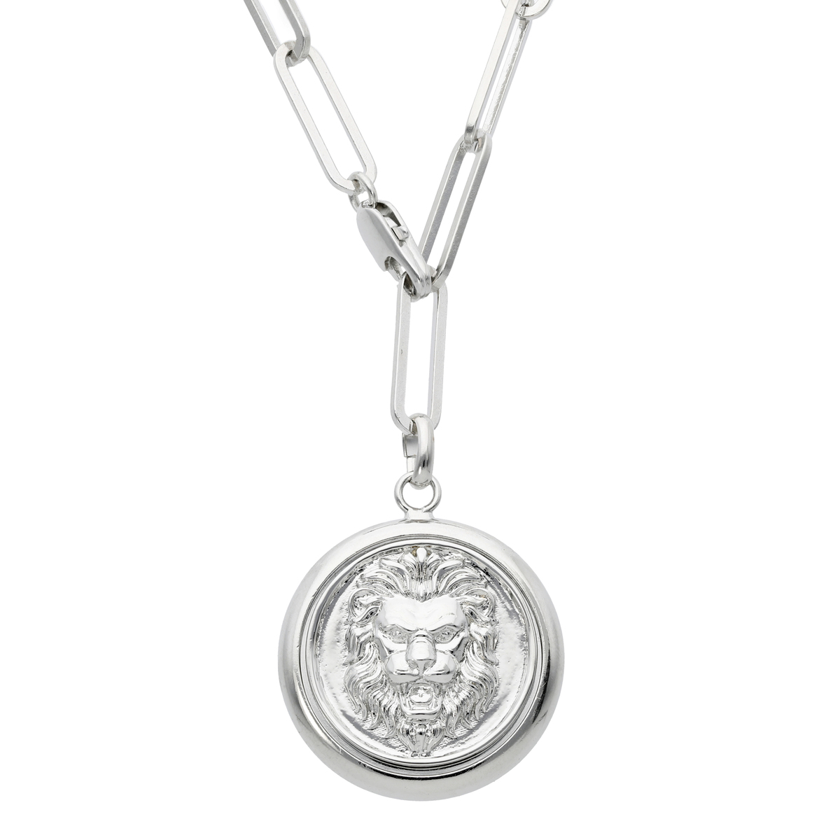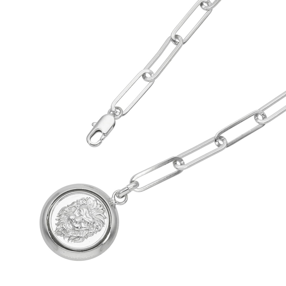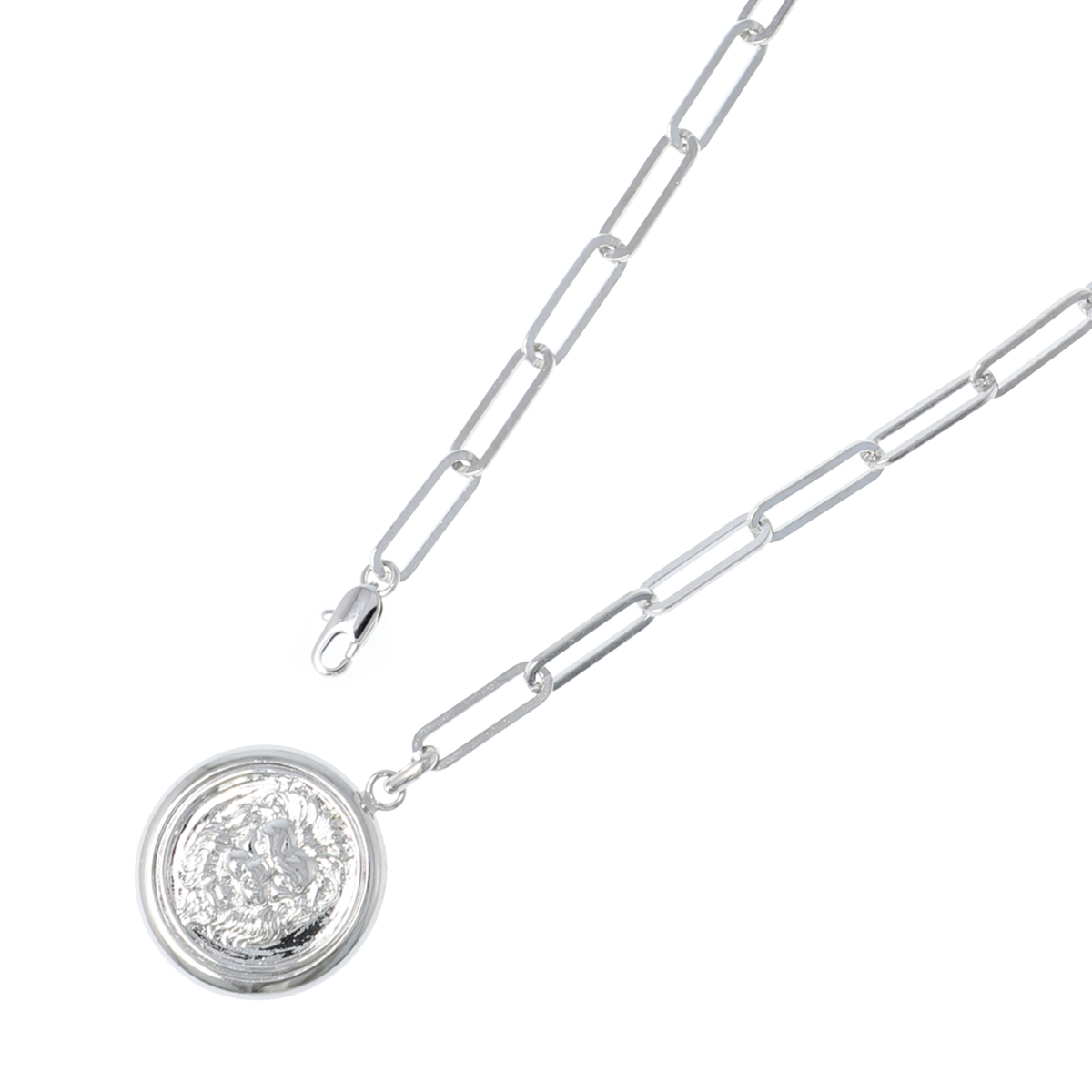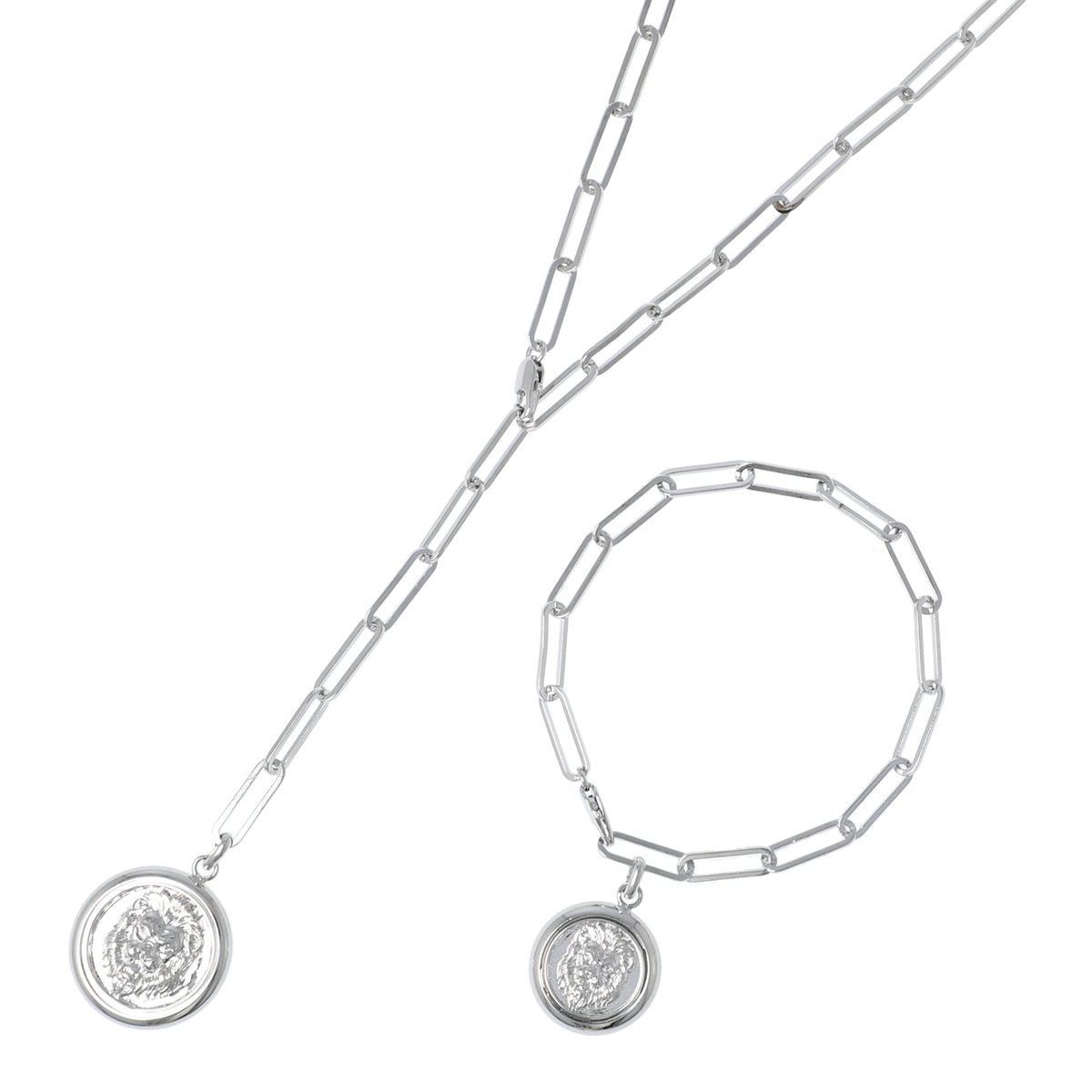 勇ましいライオンをかたどった、コインモチーフのチャームをドロップ。トレンドのチェーンと合わせた、ネックレスとブレスレットです。シンプルなデザインで、どんなファッションにもマッチします