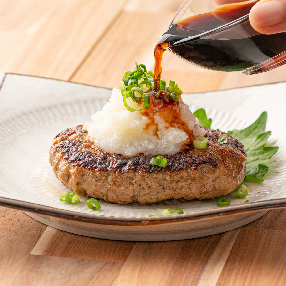 牛肉本来の美味しさをお楽しみいただけるよう、あえてソースはお付けしていません。そのままで充分美味しくお召し上がりいただけますが、お好みで大根おろし・ポン酢等で和風アレンジや、目玉焼きをのせるのもおすすめです