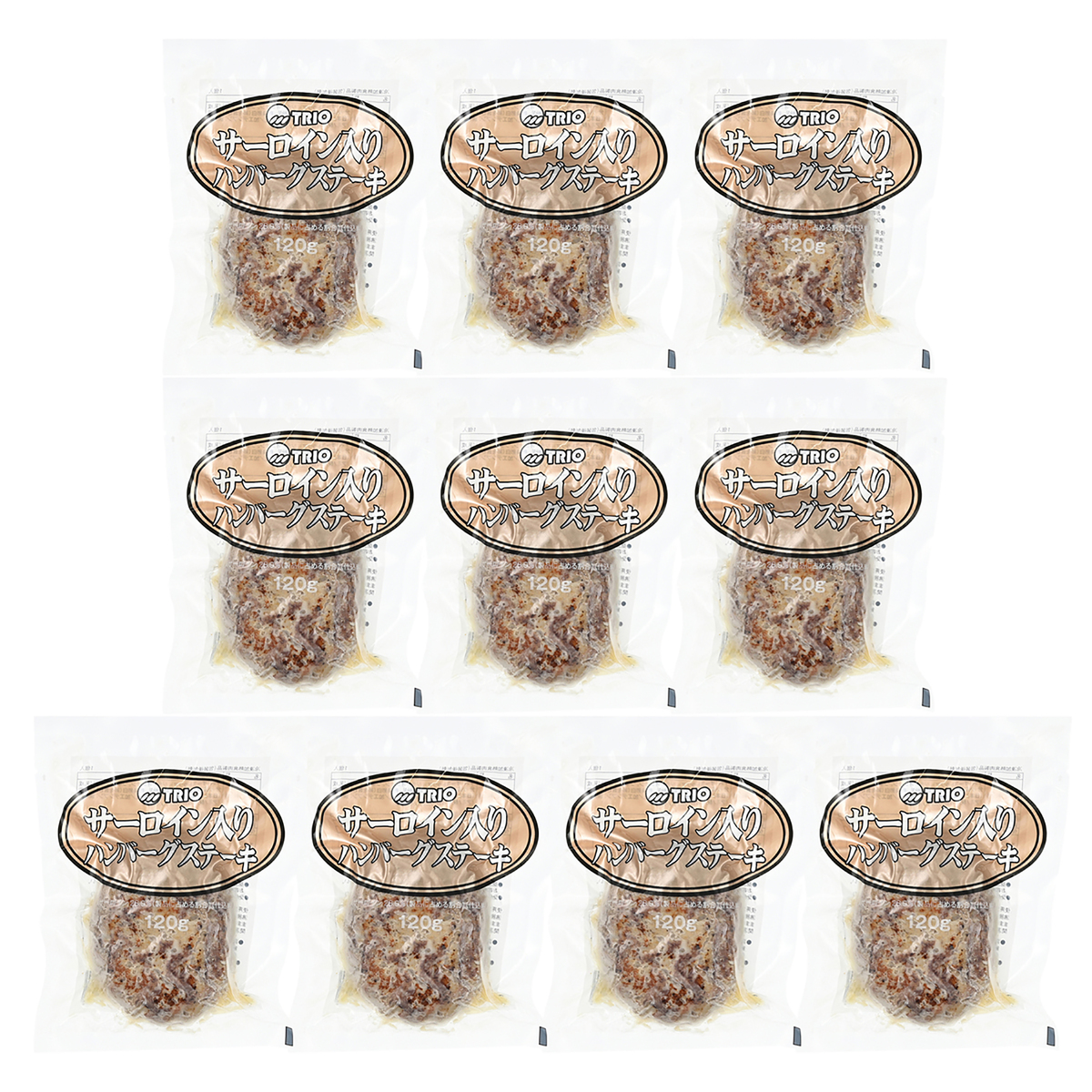 [アレルギー物質特定原材料8品目] 卵、小麦、乳 [内容量] 120g×10個 [賞味期限] 出荷時点で賞味期限まで120日以上ある商品をお届けします [保存方法] 開封前:冷凍-18℃以下 開封後:早めにお召し上がりください [お召し上がり方] 沸騰したたっぷりのお湯に、凍ったままの「サーロイン入りハンバーグステーキ」を袋ごと入れ、約20分間温めてください [注意事項] ※袋が熱い鍋のふちにふれたり、鍋からはみ出していると、とけることがありますのでご注意ください ※加熱後は袋も中身も熱くなりますので、やけどのご注意ください [原料原産地] 牛肉(オーストラリア)、牛脂(日本) [加工地] 日本 [原材料]牛肉(オーストラリア)、ソテーオニオン、つなぎ(パン粉(乳成分・小麦・大豆を含む)、脱脂粉乳、乾燥卵白(卵を含む))、牛脂(日本)、牛乳、食塩、香辛料、植物油/加工デンプン、調味料(アミノ酸)、香料、カロチノイド色素