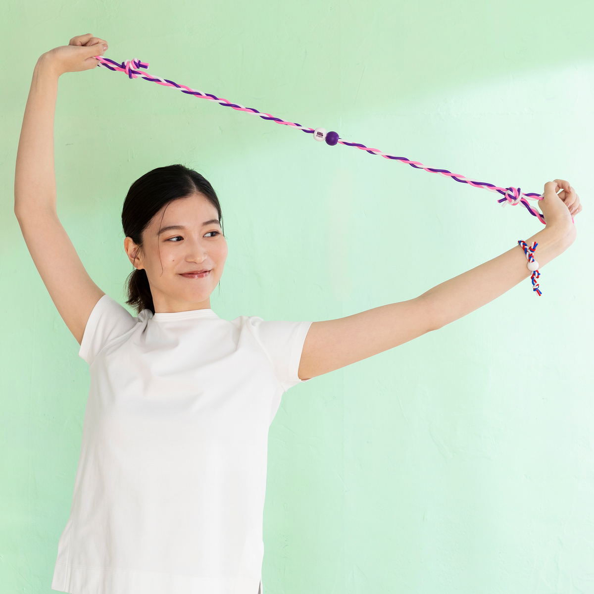 本品を手に通し、左右均等に引っ張りながら運動やストレッチすることで、自然に左右対称の動きで無理なく楽に、バランスと姿勢が整った状態でストレッチや筋力アップを目指せる、運動サポート器具です