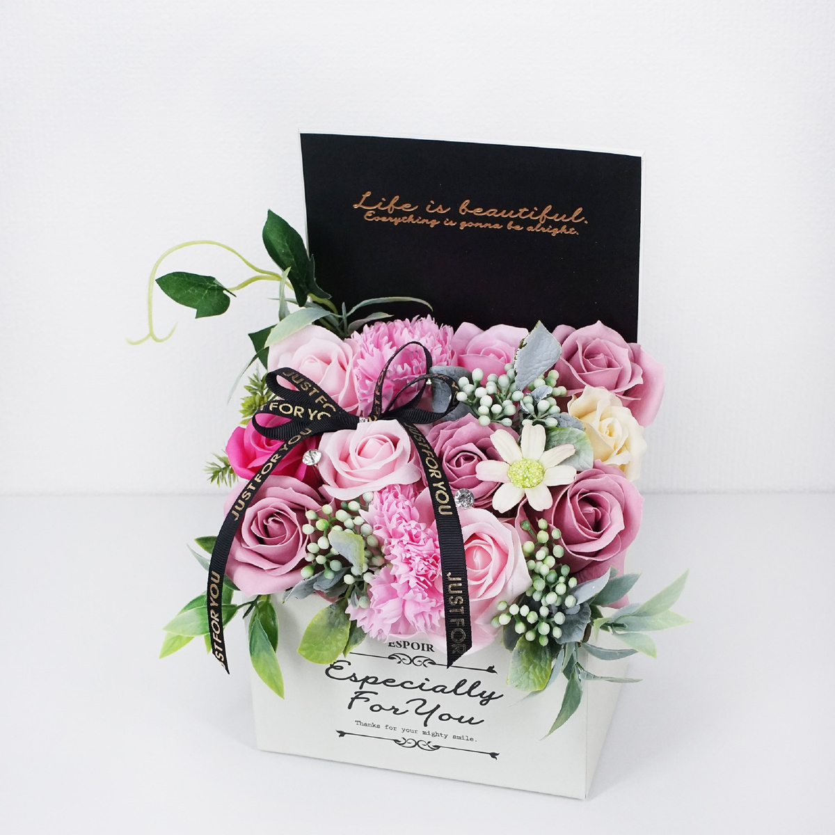 玄関やお部屋などを華やかに彩る観賞用のソープフラワーです。水やり不要で、お手入れなしでもきれいに飾ることができます