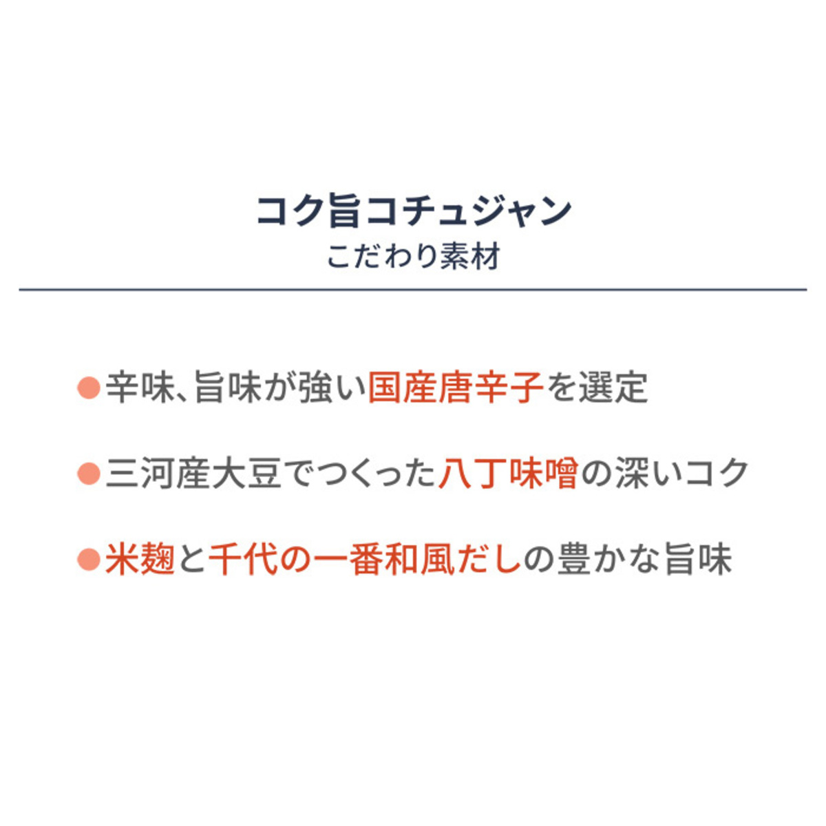 国産唐辛子と八丁味噌、千代の一番だしを使用したコチュジャン。韓国料理の味付けをはじめ、さまざまなお料理に幅広く活用できます