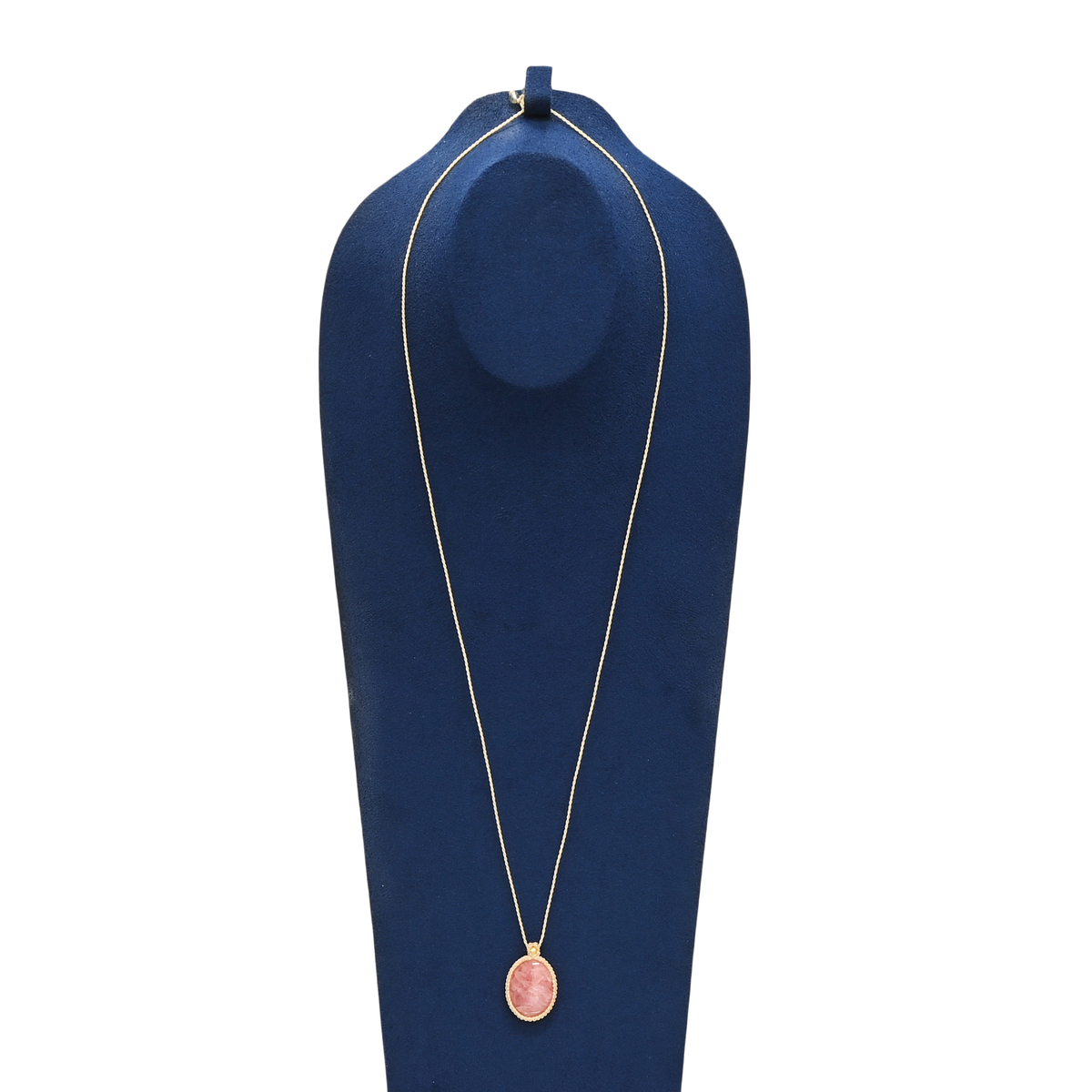 ロードクロサイトの石言葉は愛情運・富・名声の象徴。愛らしい色合いで胸元を華やかに彩ります。紐をスライドして長さ調節ができ、装いに合わせて楽しめます