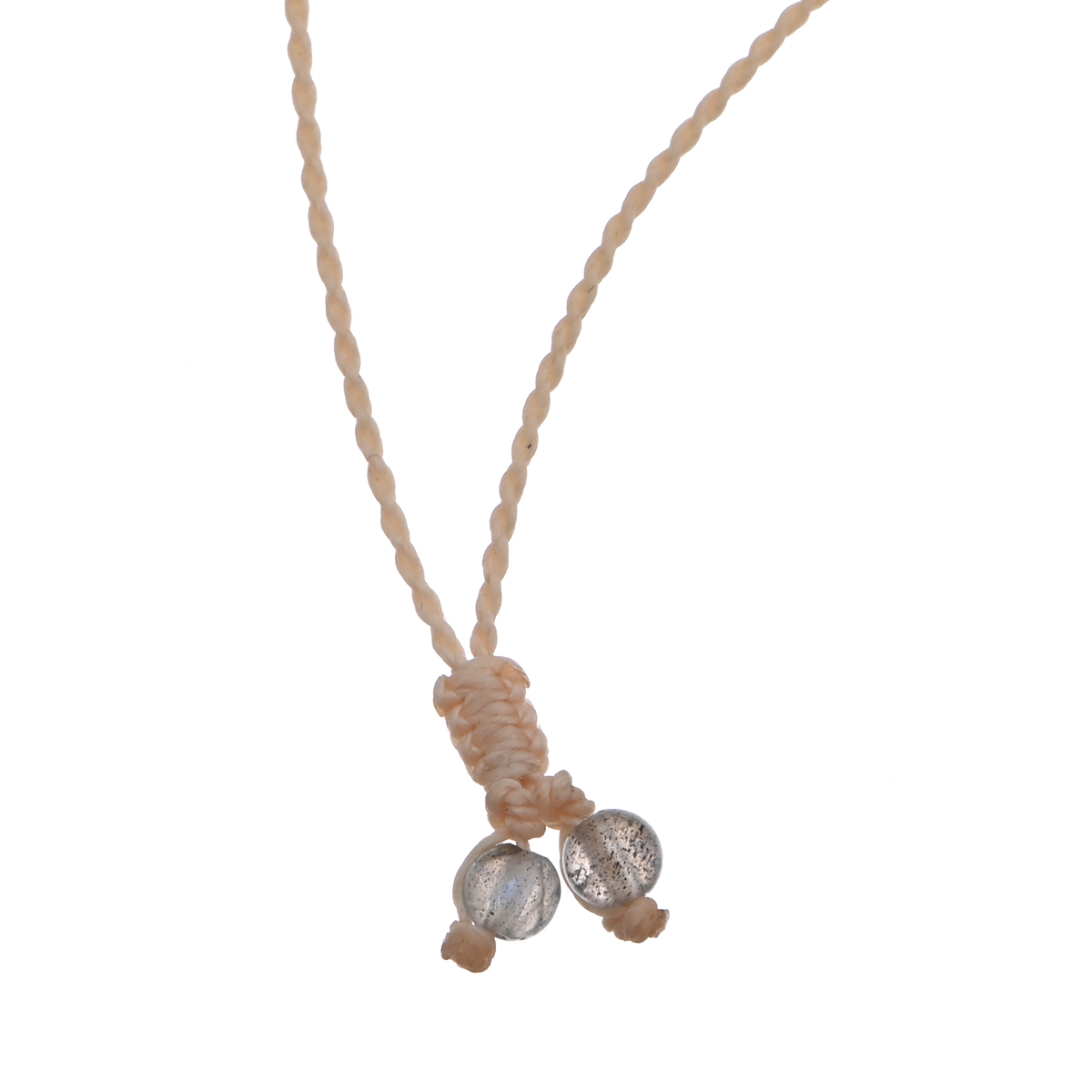 華やかなピンク色が特徴のロードクロサイトをあしらったネックレス。オーバルシェイプ・カボションカットのロードクロサイトを蝋引き紐を用いたマクラメ編みで編み留めています