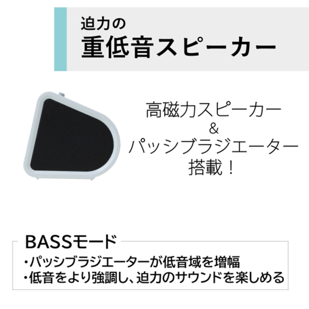 左右側面に配置した6Wの高磁力スピーカー(モノラル)とパッシブラジエータで、迫力のあるサウンドと中高音質を再現するカセットプレイヤースピーカー。スマートフォンなどの音楽をスピーカーとして楽しむだけでなく、カセットテープの音源をお手持ちのワイヤレスイヤホンなどのBluetooth対応機器へ送信してカセットの音楽を楽しむこともできます