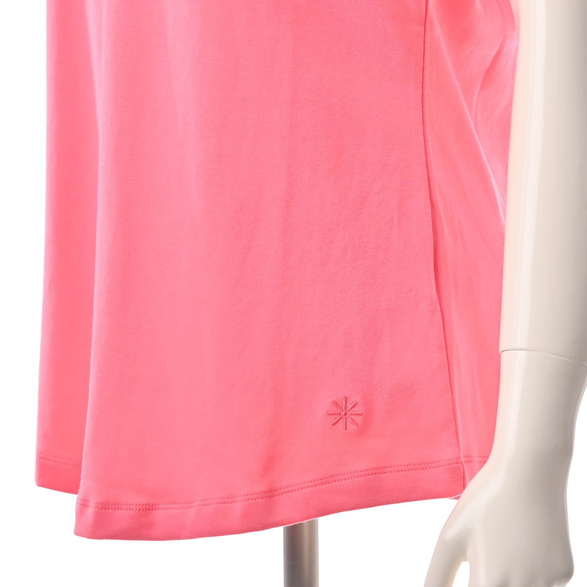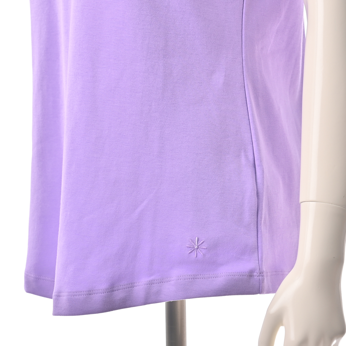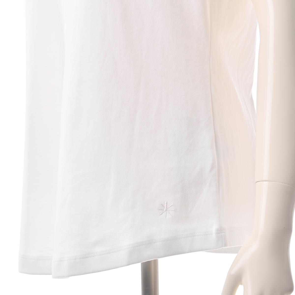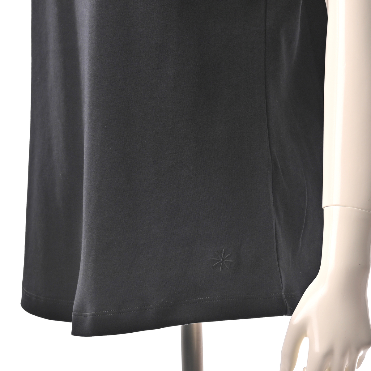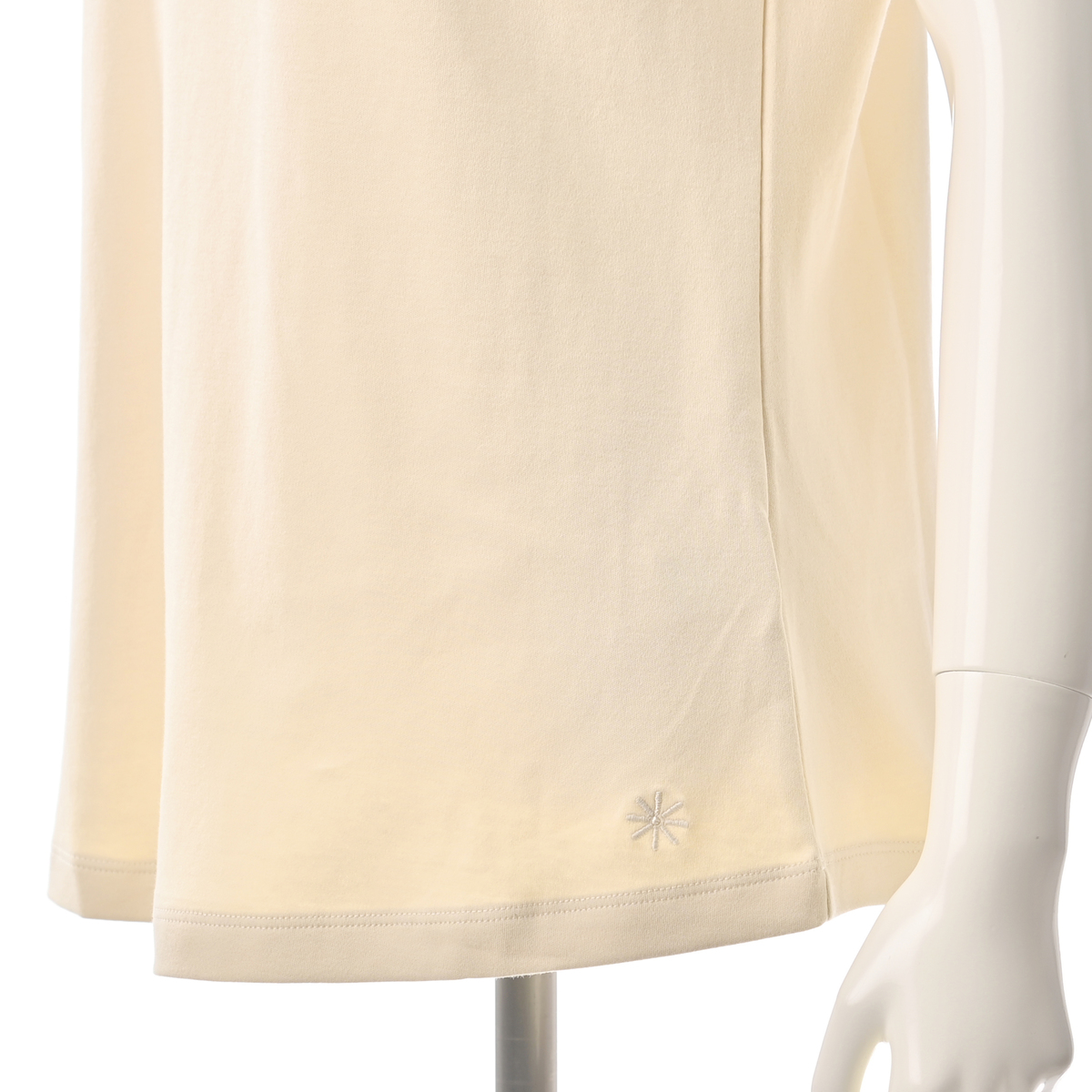 裾はゆるやかなラウンドシェイプで、柔らかな印象をプラス。左裾にはディジーロゴの刺しゅう入り。同色でさりげないアクセントになっています
