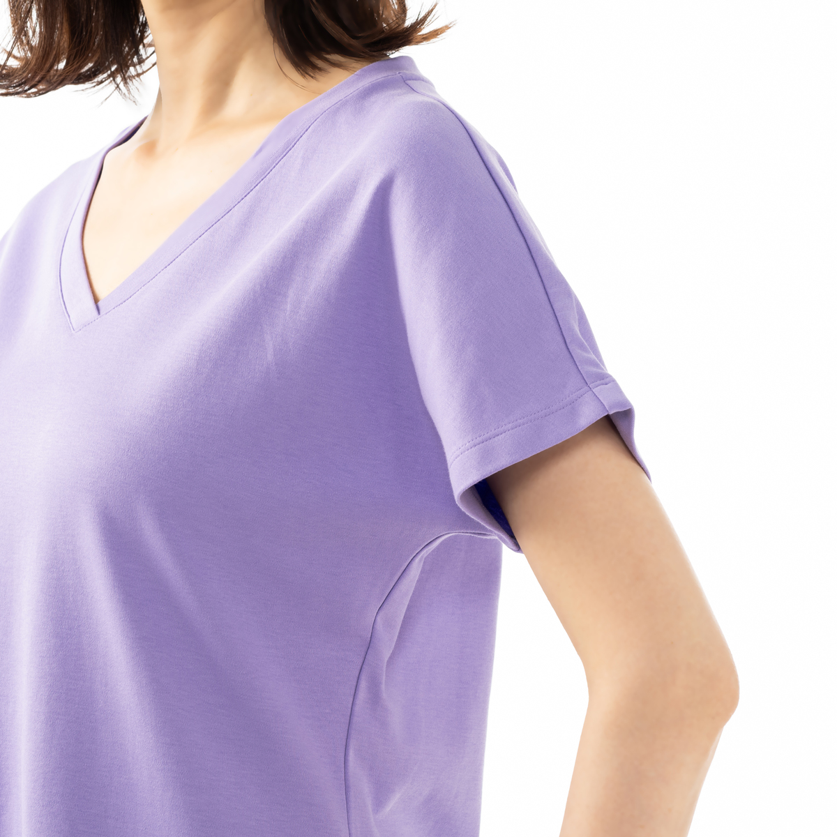シンプルで着まわしやすいVネックのプルオーバーです。首元は程よい開き具合ですっきりとした印象に。肌触りのよいシルキーコットンで仕立てました