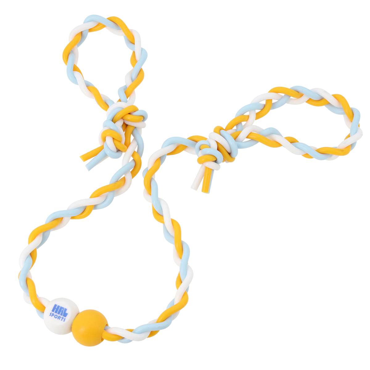両サイドには手を通せるリング部分があり、握力のない方でも引っ張りやすく、またこの輪を調節することで長さ調節が可能。中央部のボールは、筋肉を刺激したり、楽体を垂直に引っ張ることで移動するので、まっすぐに引っ張れているかの確認や、砂時計のように時間の目安として利用しながらの楽体トレーニングに役立ちます