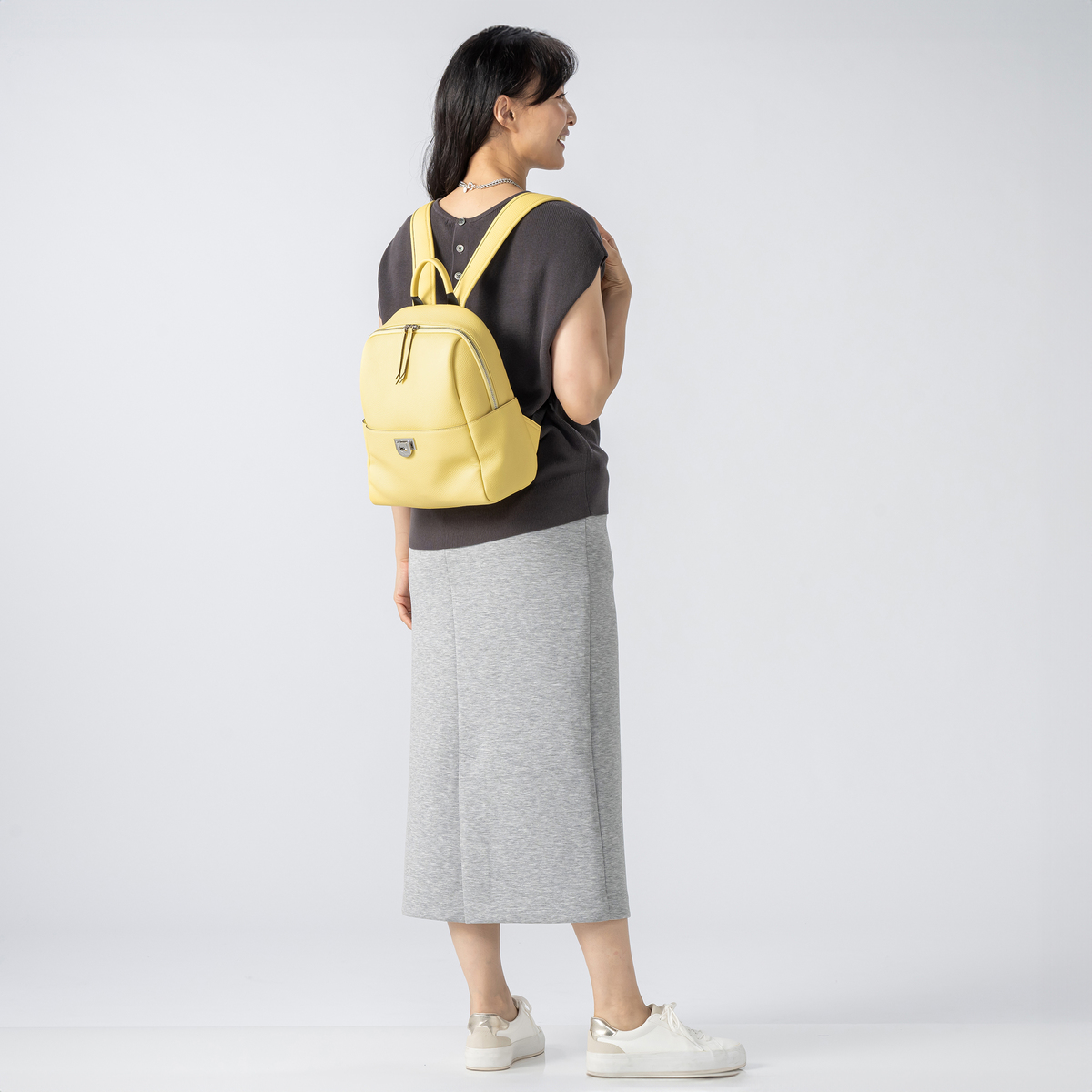 メイン収納は左右どちらからも開閉できるWファスナーを採用。大きく開くので荷物の出し入れがしやすく、ノートPCやタブレットも収納可能です。背面部には通気性・クッション性のある素材を採用し、肩・背中が痛くなりにくく、季節を問わず活躍します