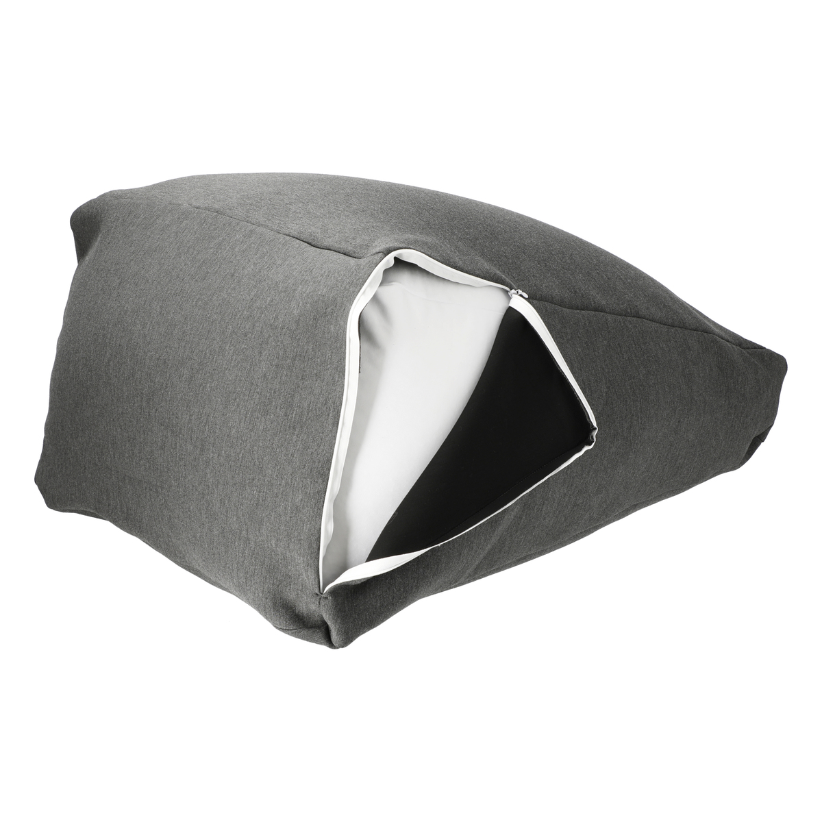 [商品内容] ・本体 ・専用カバー [サイズ(約)] 幅50×奥行55×高さ10(低い部分)35(高い部分)cm※平置き時 [重量(約)] 本体:1690g 専用カバー:470g [材質] <本体> 側地:ポリエステル90% ポリウレタン10% 詰め物:ポリエチレン/ポリスチレン複合ビーズ、ポリエステルわた <カバー> レーヨン75% ナイロン15% ポリウレタン10% [お手入れ] 本体:手洗い可 カバー:洗濯機洗い可 [注意事項] <本体> ※本製品の梱包に使用しているプラスチック袋などの梱包材で、お子様が遊んだりしないよう、開封後は速やかに廃棄してください ※乳幼児へのご使用は思わぬ事故につながる恐れがあるのでお止めください ※燃えやすいので、タバコの火やヒーター等の火気や熱源は、絶対に近づけないでください ※上で飛び跳ねたり、立ち上がったりすると思わぬ事故につながる恐れがありますので、他の用途でのご使用はお止めください ※投げたり踏みつけたりなどの強い衝撃は、本体生地に穴が空き、中材が流出する原因となりますので、お避けください ※万が一中材が流出した場合は、飲み込んだり、吸い込んだりせず、目・耳・鼻などに入り込まないようご注意ください ※摩擦や水分、汗などにより色移りする場合がございますので、ご注意ください ※踏みつけるなど局所的に強い力が加わると、中材の劣化につながりますので、他の用途でのご使用はお止めください ※汗や湿気を含んだりした場合は、風通しの良い場所で陰干ししてください ※使用初期に臭いを感じることがあります。気になる場合は風通しの良い場所で陰干ししてください ※本体にある筒状の部分は、詰め口です。パンク防止も兼ねておりますので、飛び出している場合、本体内部に押し込んでご使用ください ※お手入れの際は、洗濯表示をご確認のうえ、お手入れを行ってください ※本体を洗濯する際は、手洗いで行ってください ※干す際は、型崩れを防ぐため、形をきちんと整えてから風通しの良い場所で陰干ししてください <カバー> ※カバーを洗濯する際は色落ちや色移りすることがありますのでご注意ください 【日本製(カバー:中国製)】