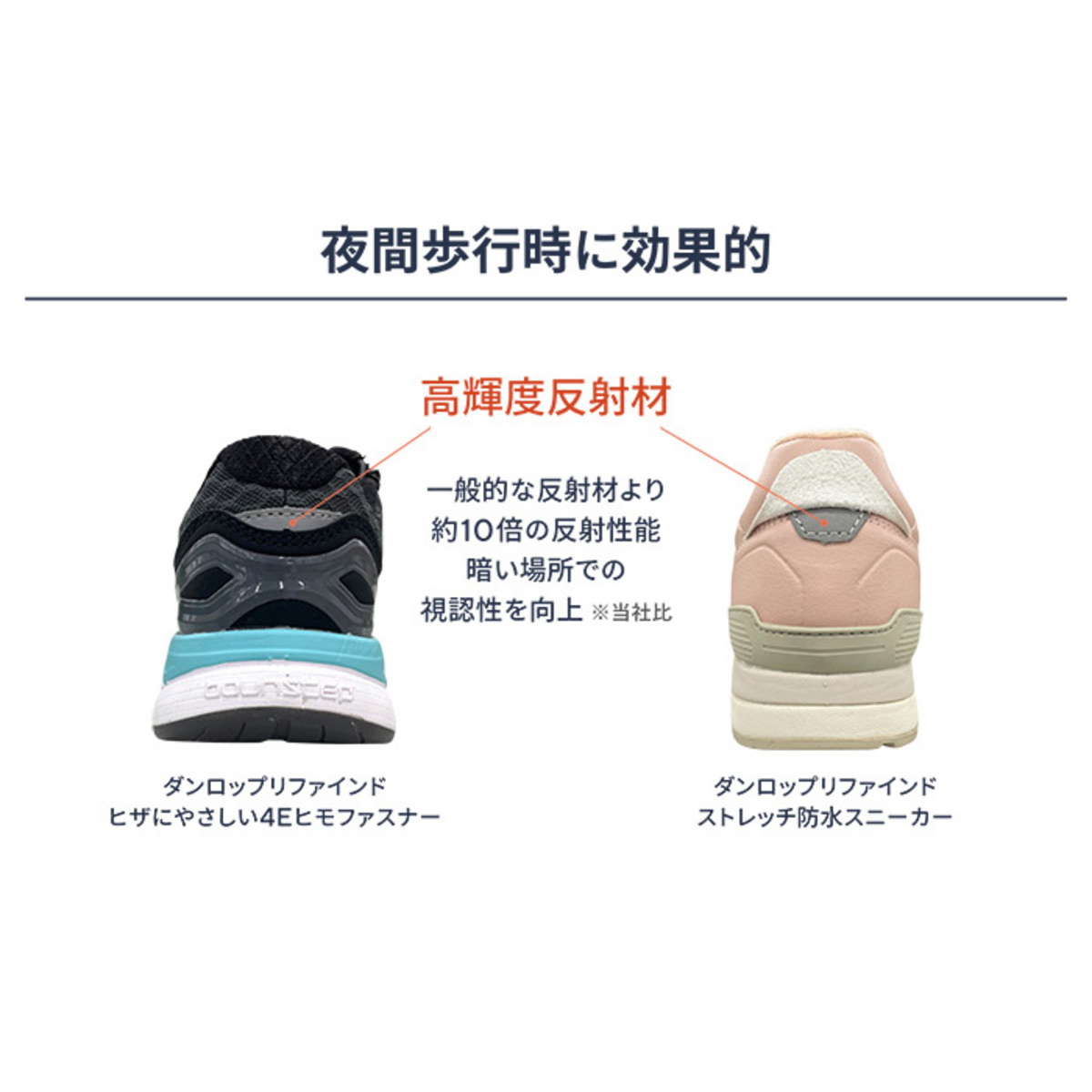 柔軟性と弾性のある素材でクッション性が良く、ヒールカップ形状により踵のフィット感がいいインソールを搭載したシューズ。かかと部分に高反発発泡体と低反発発泡体から成るバウンステップの構造を持つ靴底として、特許を取得しています(特許第5257714号)