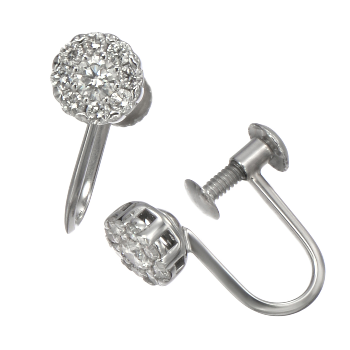 素材:[ダイヤモンド] ラウンドシェイプ 爪留め 18石 合計0.30ctUP <イヤリング> 縦×横(約) 5.0×5.0mm(金具含まず) 総重量(約) 1.5g 留具の形状 スクリュー <ピアス> 縦×横(約) 5.0×5.0mm(金具含まず) 総重量(約) 1.0g 留具の形状 ポスト&キャッチ(シリコン付) [地金] プラチナ950(本体)、プラチナ900(一部) ■受注発注商品のためデザイン・価値に影響のない範囲で仕様が変わる場合がございます ■素材の大きさ・形・色合い、製品のサイズは1点1点多少異なります 【日本製】
