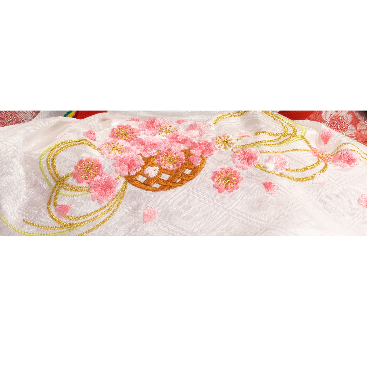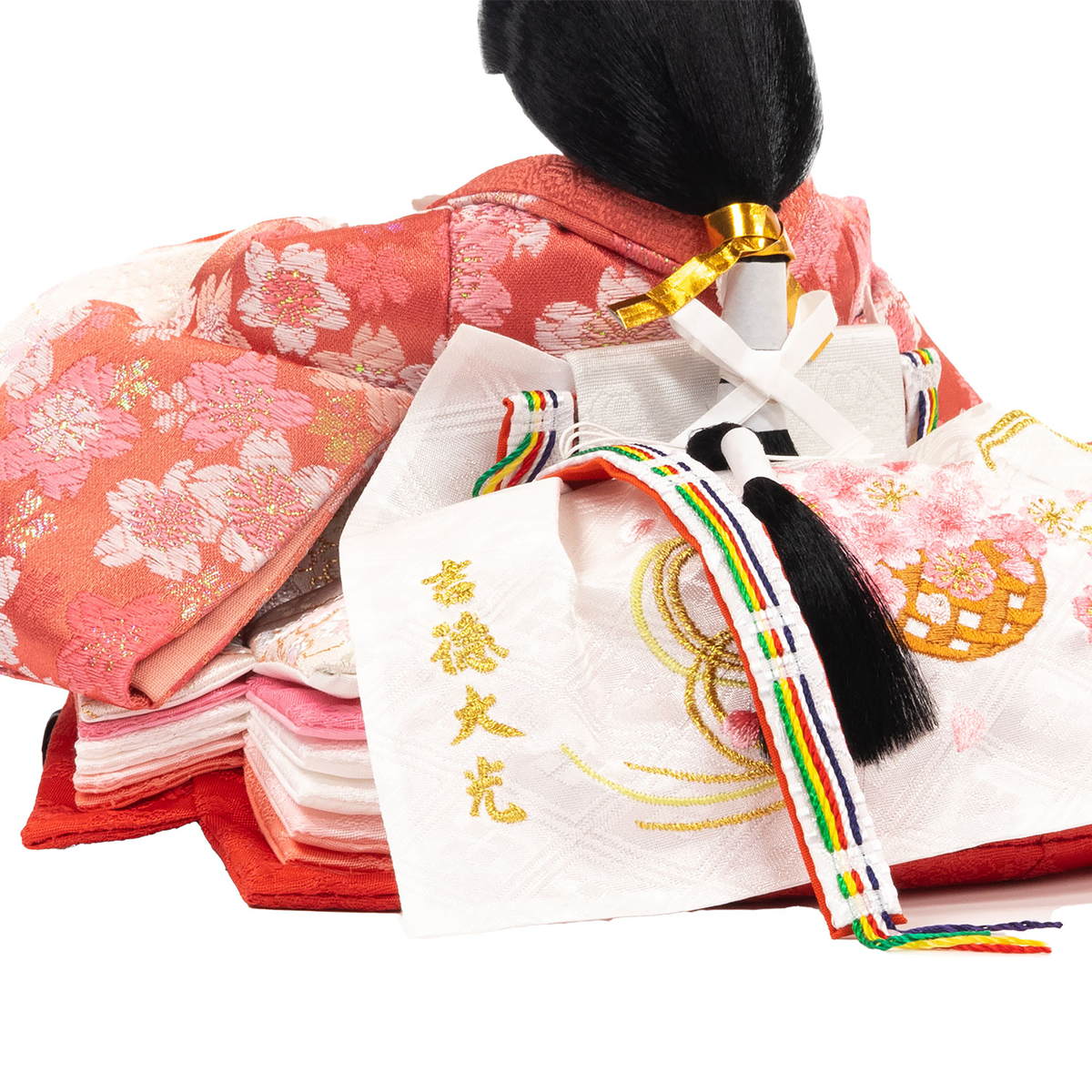 「人形は顔がいのち」の吉徳から、親王飾りをご紹介します。お顔はこだわりの優しく可愛らしい表情。衣裳には華やかな桜を織り込みました