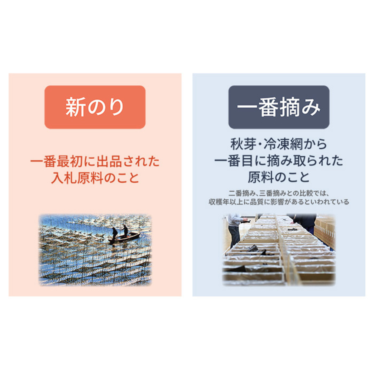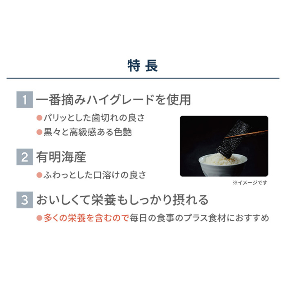 「ニコニコのり」から、九州有明海産の中でも佐賀県産の一番摘み原料*に限定した焼のりをご紹介。「ニコニコのり」のプレミアムクラスの中でも、ワンランク上の一番摘み原料を選りすぐって使用しています