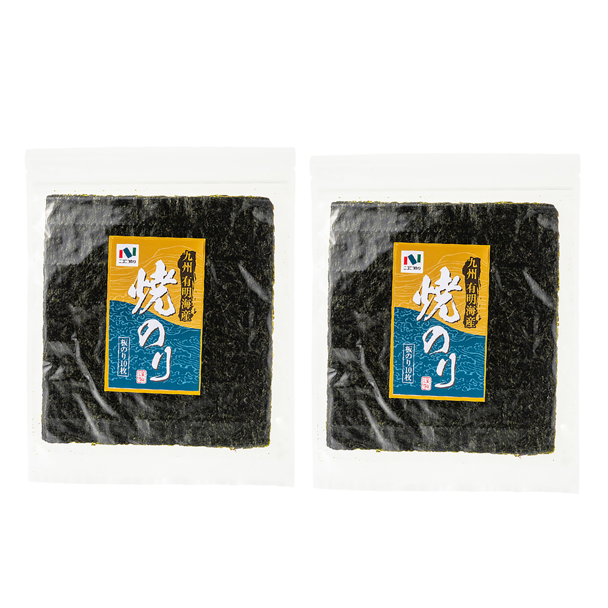 [アレルギー物質特定原材料8品目] なし [内容量] 板のり10枚×2袋 [保存方法] 開封前:直射日光、高温・多湿をさけて、保存してください 開封後:お早めにお召し上がりください [お召し上がり方] そのままお召し上がり頂けます [注意事項] ※乾燥剤入。乾燥剤は食べれませんので、お取り扱いに注意してください ※原材料ののりは、「えび・かに」の生息する海域で採取しています ※のりはとても湿りやすいので、開封後は乾燥剤と共にチャックを閉めて、湿気のない所に保存し、お早くお召し上がりください [原料原産地] 乾のり(九州 有明海産) [加工地] 日本 [原材料] 乾のり(九州 有明海産)