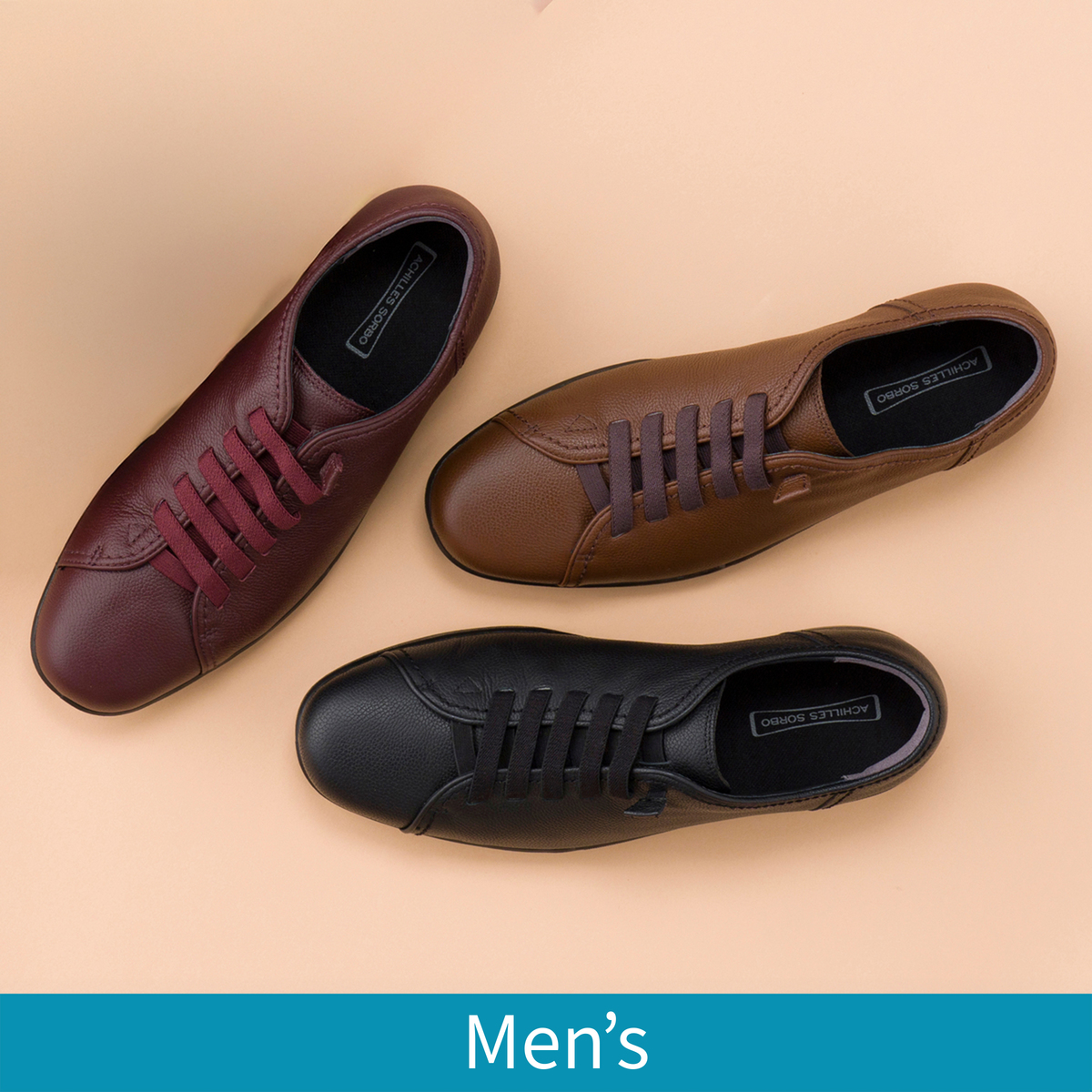 底材には、軽量でクッション性・反発性・屈曲性・耐摩耗性・グリップ力に優れた、アキレス独自のPU(ポリウレタン)ソールを使用。踵に搭載されている衝撃吸収材“ソルボセイン”は、医療現場でも使用されており(インソール・サポーター)、立位時には圧力を分散し、踵の負担を軽減します