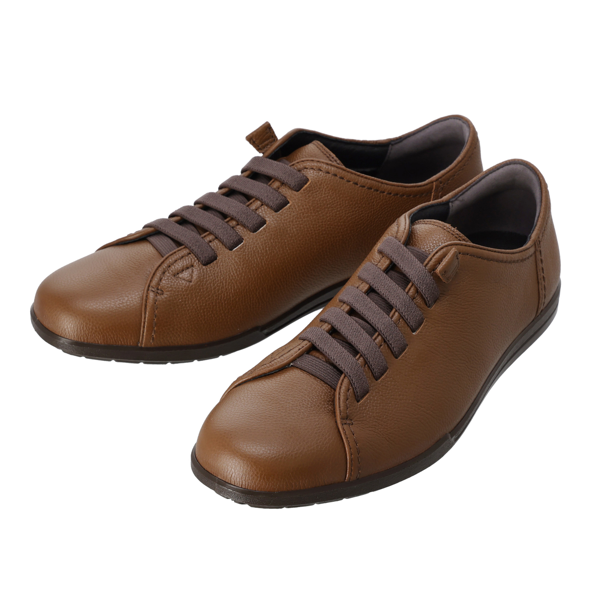 3Eのワイズで、着脱簡単なゴム紐仕様のスリッポンシューズ。ゴム紐は長さ調整可能で、緩い場合に締めることができ、外羽根デザインで甲高の足でもゆったり履くことができます。型押しのアッパー素材はきれいめな印象で、甲材は足なじみの良い本革(牛革)を使用。革をなめす段階ではっ水加工を実施しています