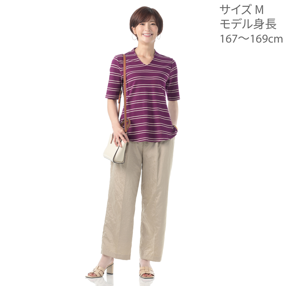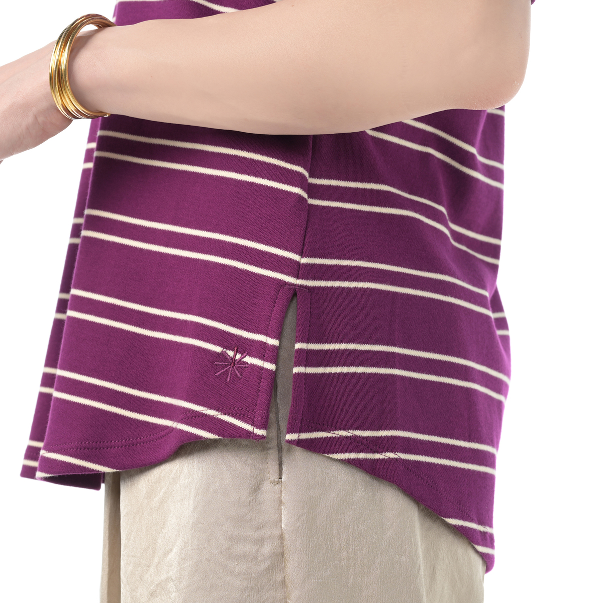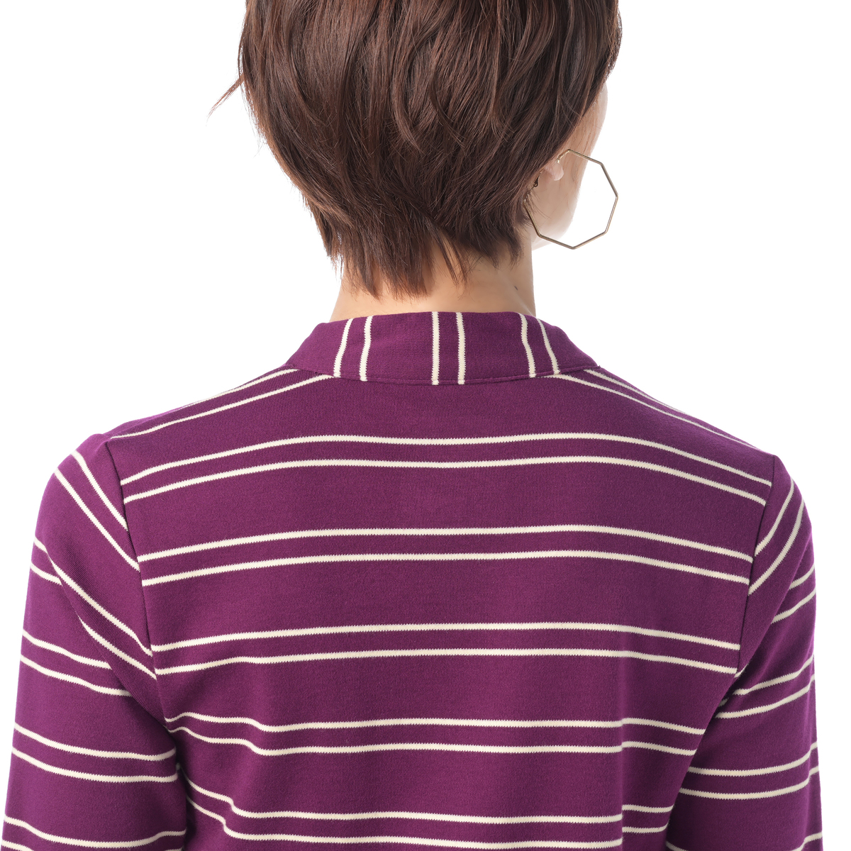 シンプルながら着映えするVネックプルオーバー。後ろ衿が立ちあがったデザインが首元を美しく見せます。丸みのある裾デザインで、両脇のスリットが動きやすさとスタイルを両立します