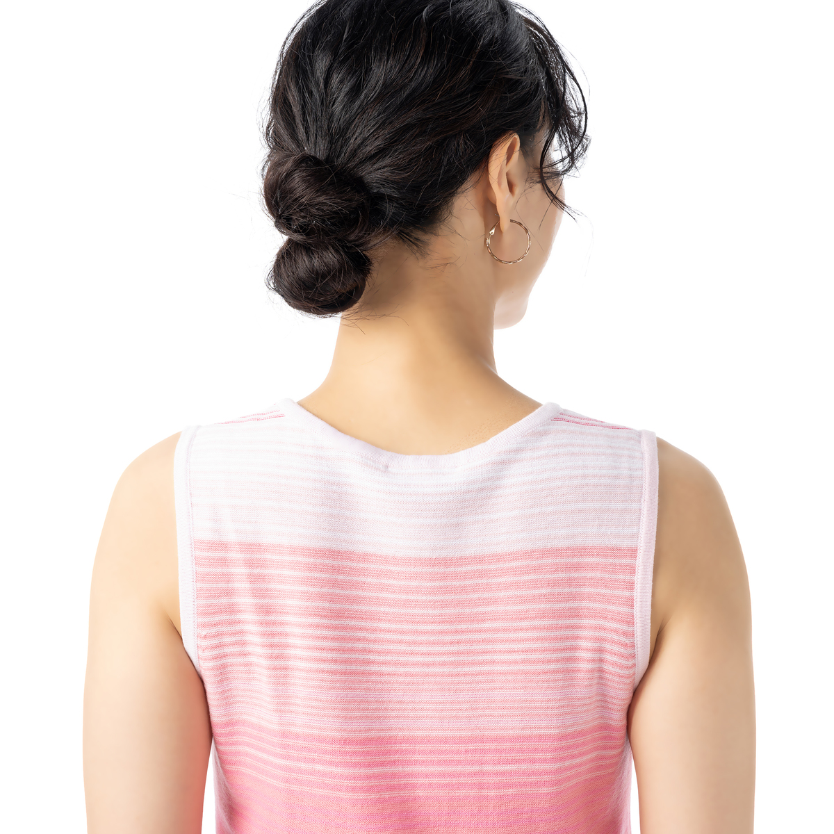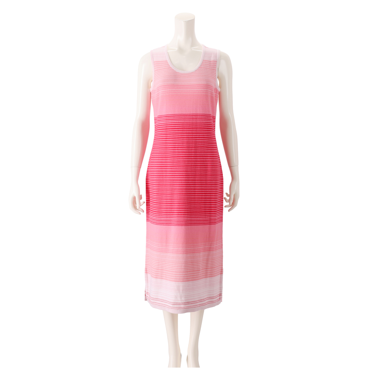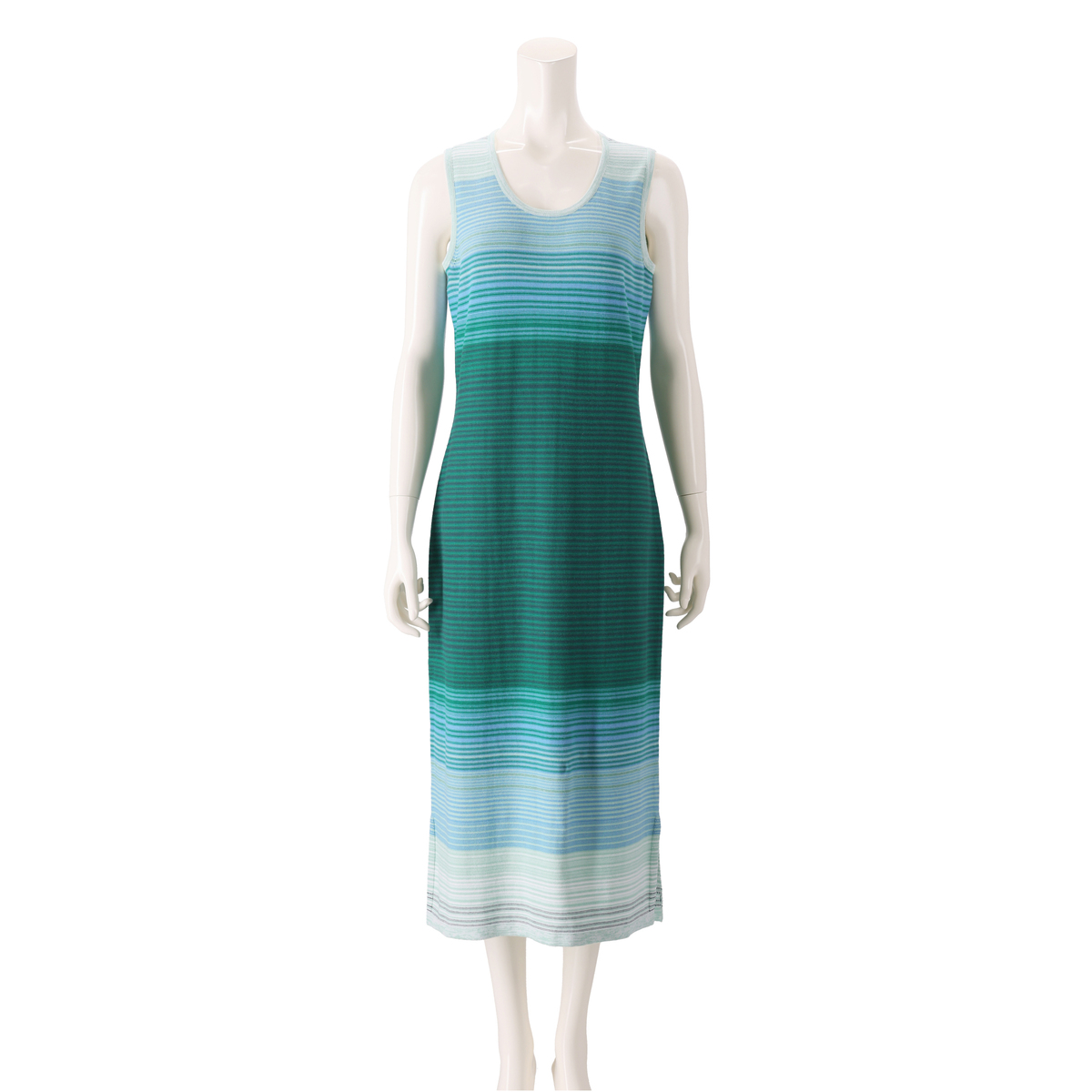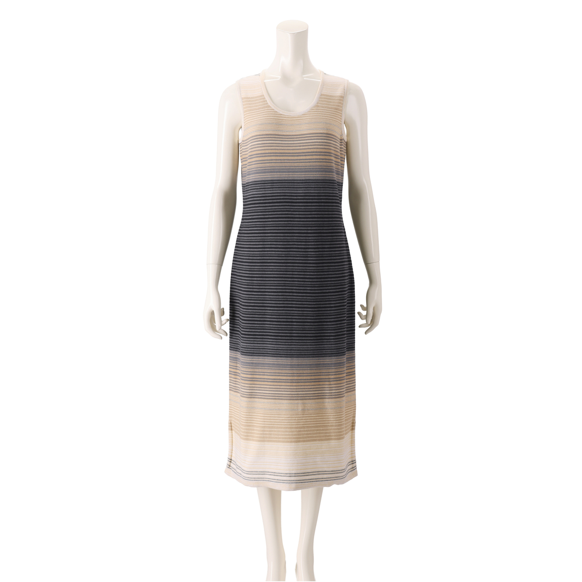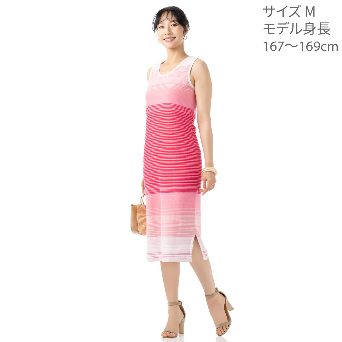 繊細なボーダーで美しいグラデーションカラーを表現したシャドーニットタンクワンピース。1枚着るだけで印象的なスタイリングが楽しめます