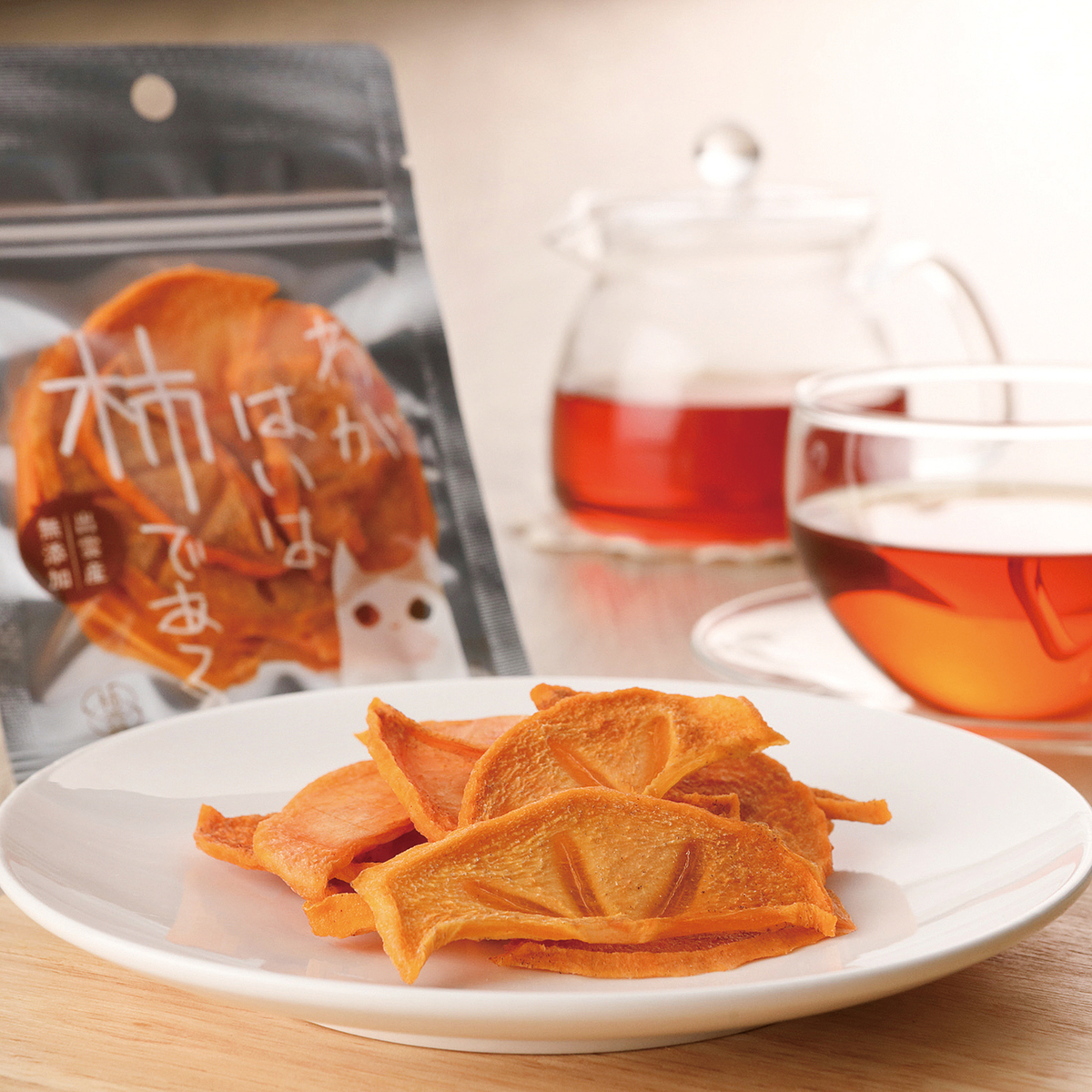 島根県出雲市にある柿農園「柿壺」で栽培された、生で食べても美味しい富有柿(甘柿)を使用した干柿。原料は柿のみを使い、保存料は不使用です