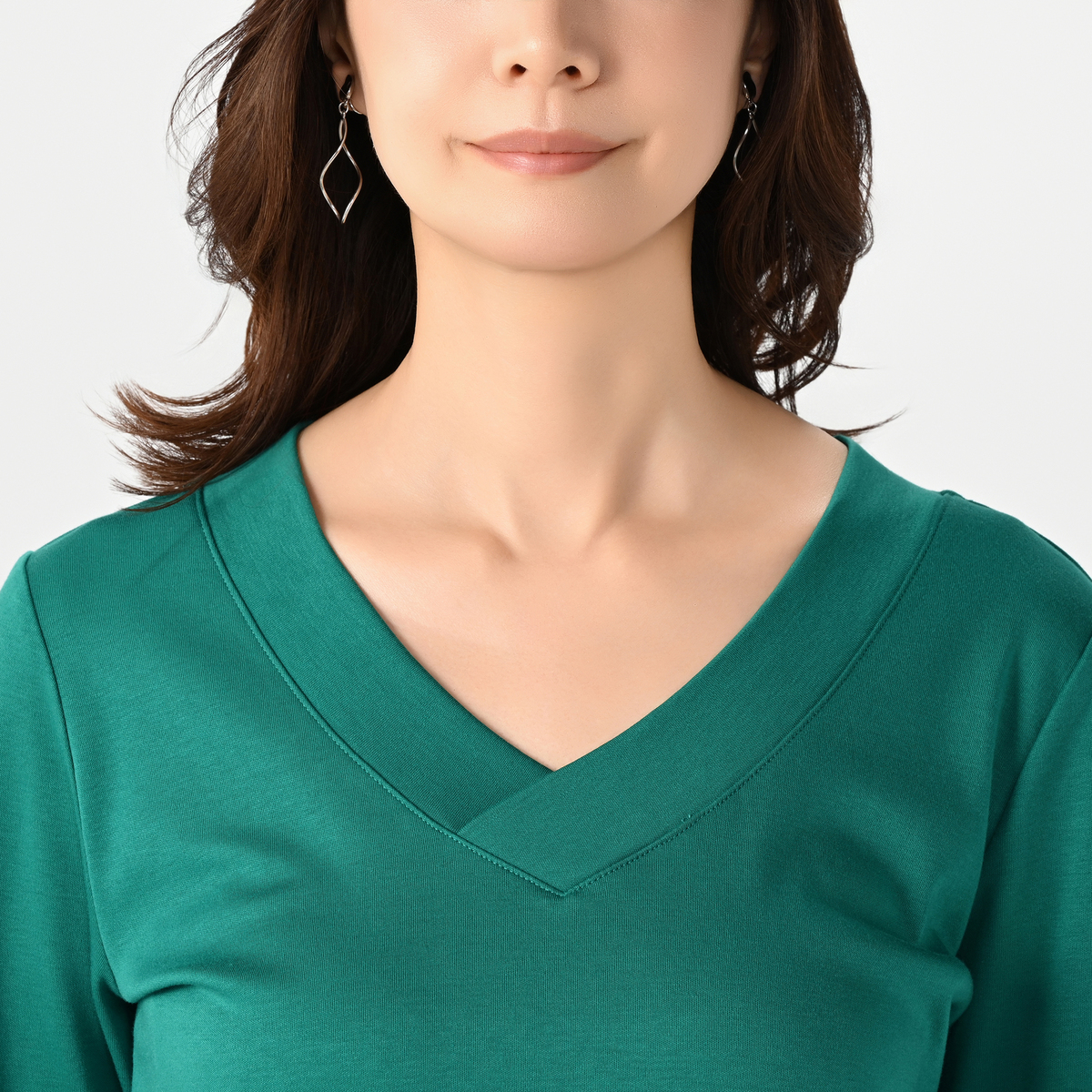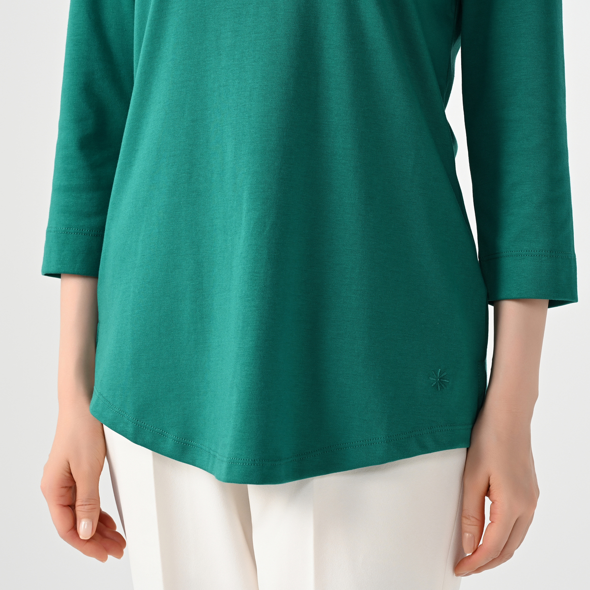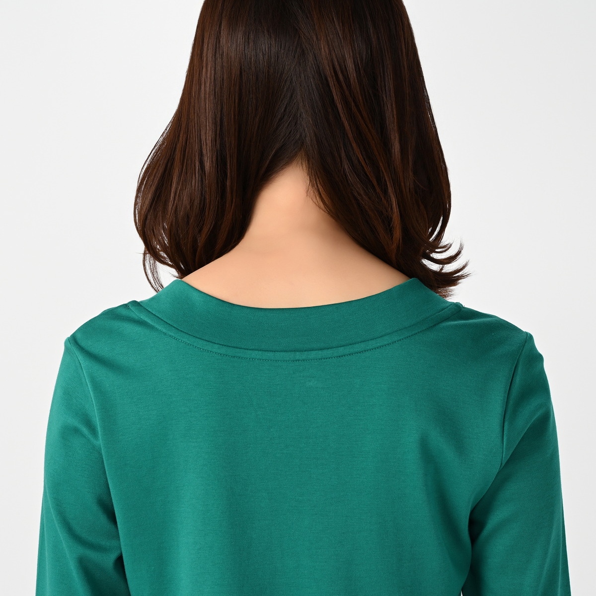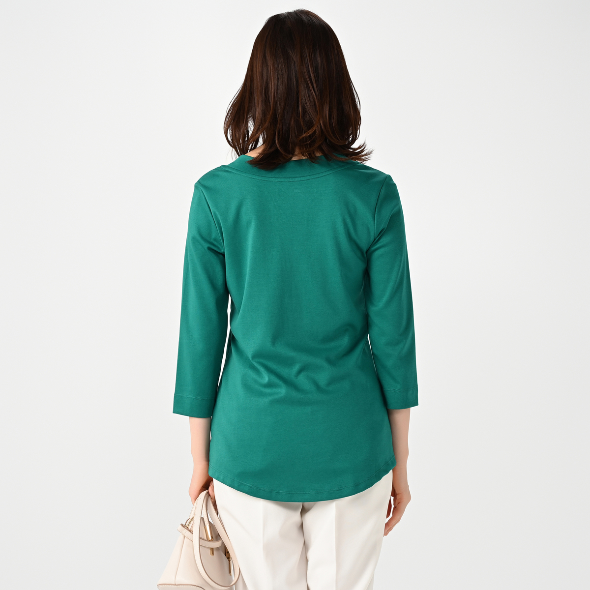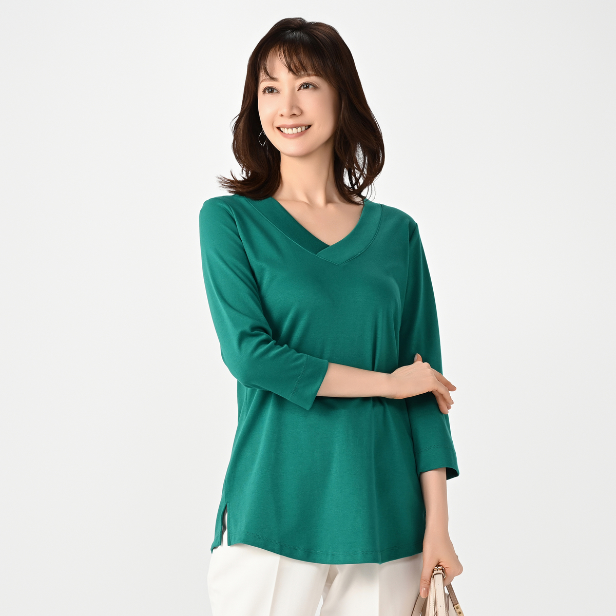 肌触りの良いコットン素材を使用。深めのネックがエレガントな雰囲気を醸し出してくれます
