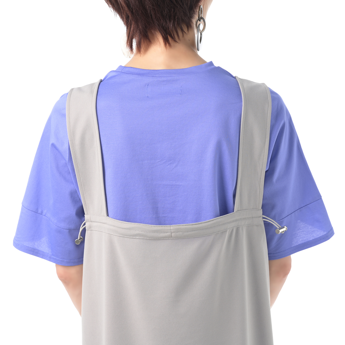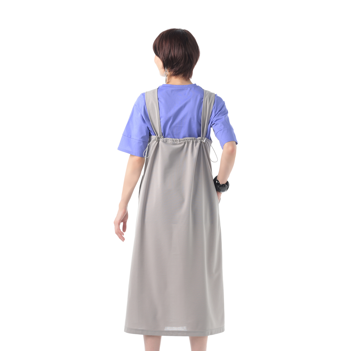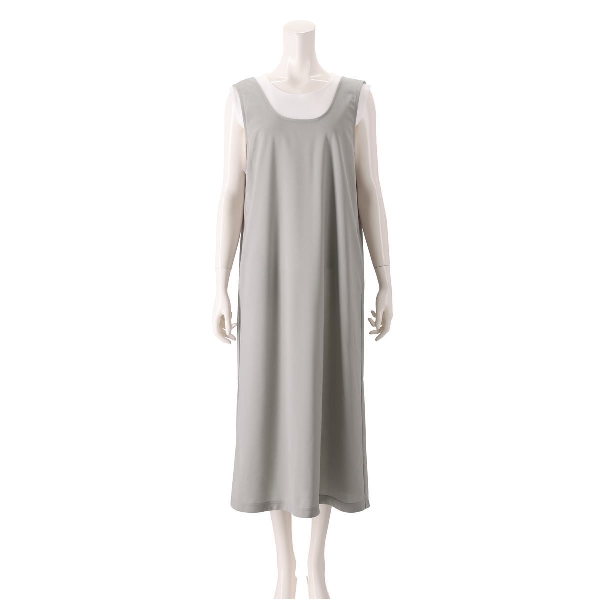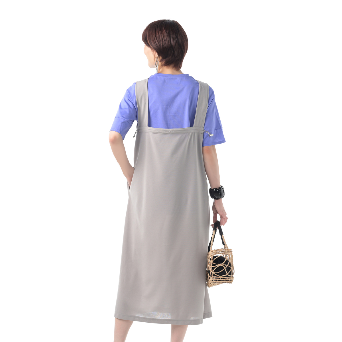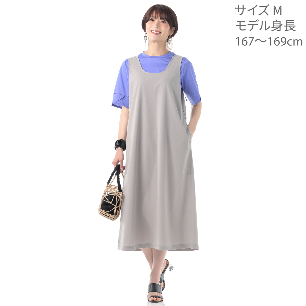 すっきりとしたシルエットのシンプルなジャンパースカート。Tシャツやブラウスを合わせるだけで上品コーデが完成します