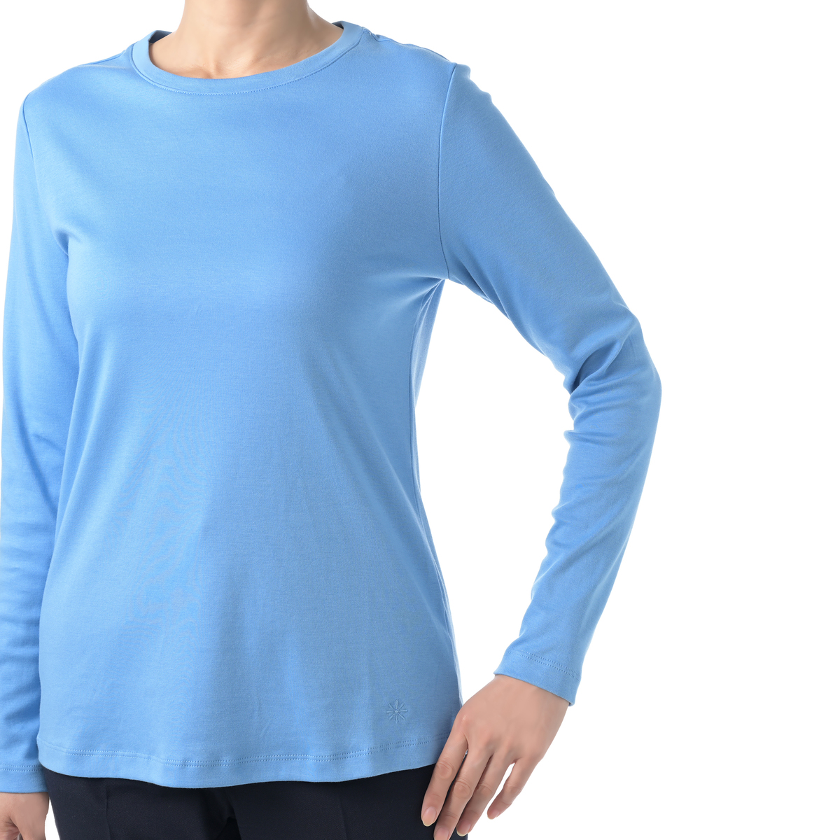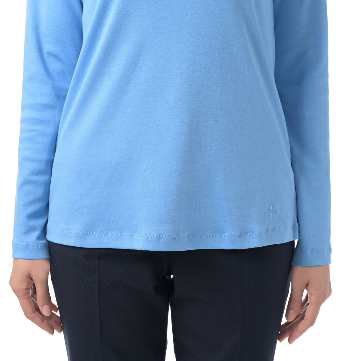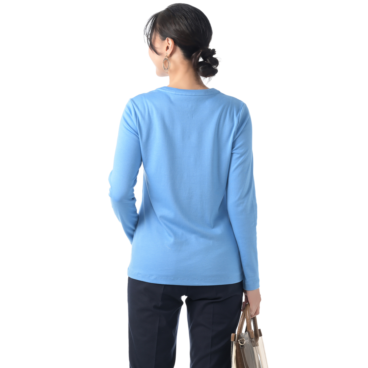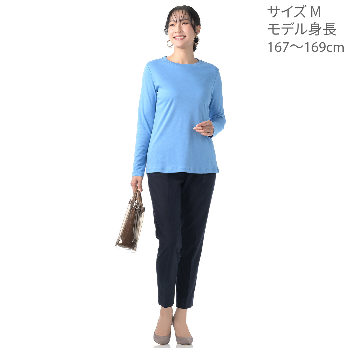 肌触りの良いコットン素材で仕立てた長袖のプルオーバーです。首元はシンプルなクルーネック。程よいフィット感で、一枚でもインナーとしても活躍します