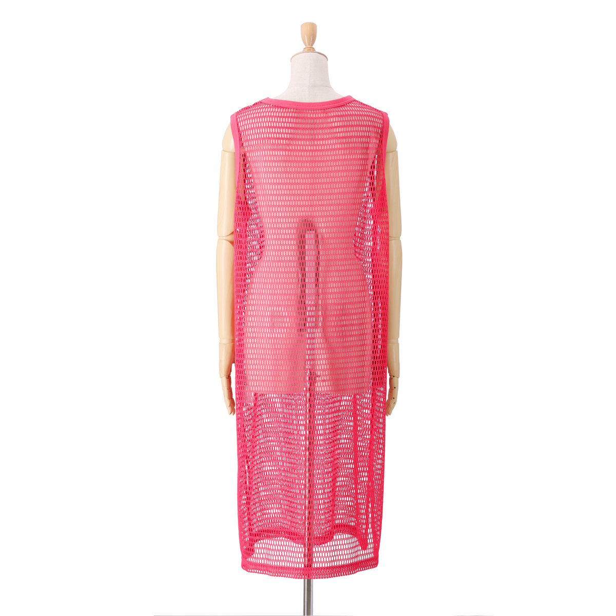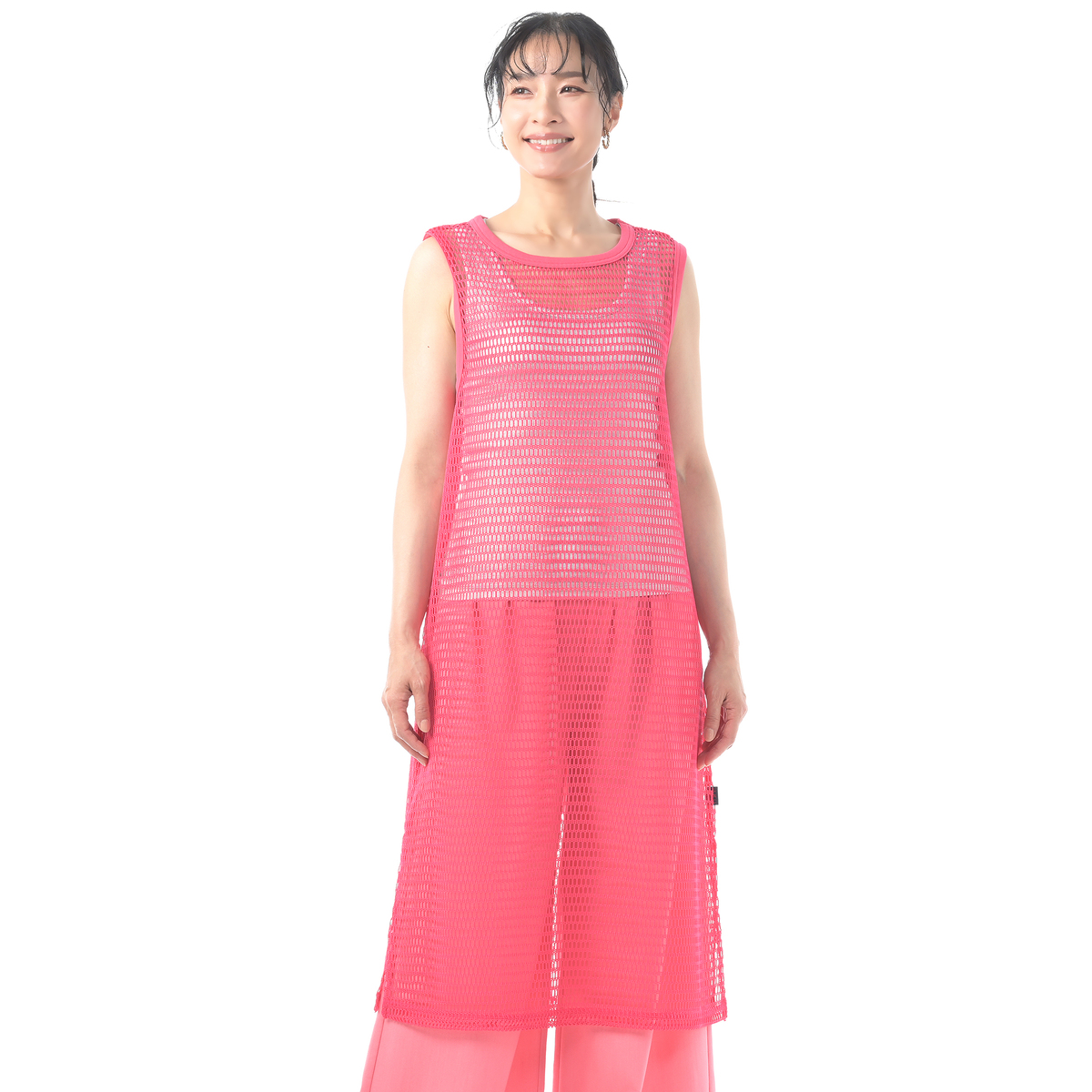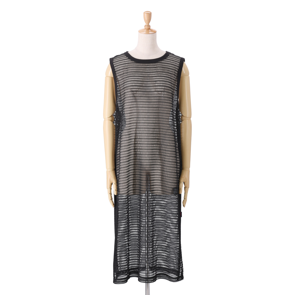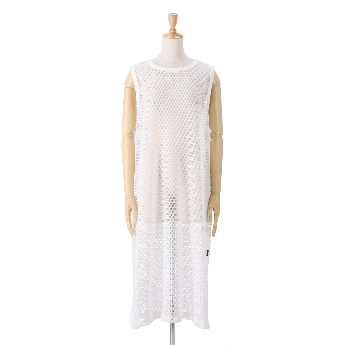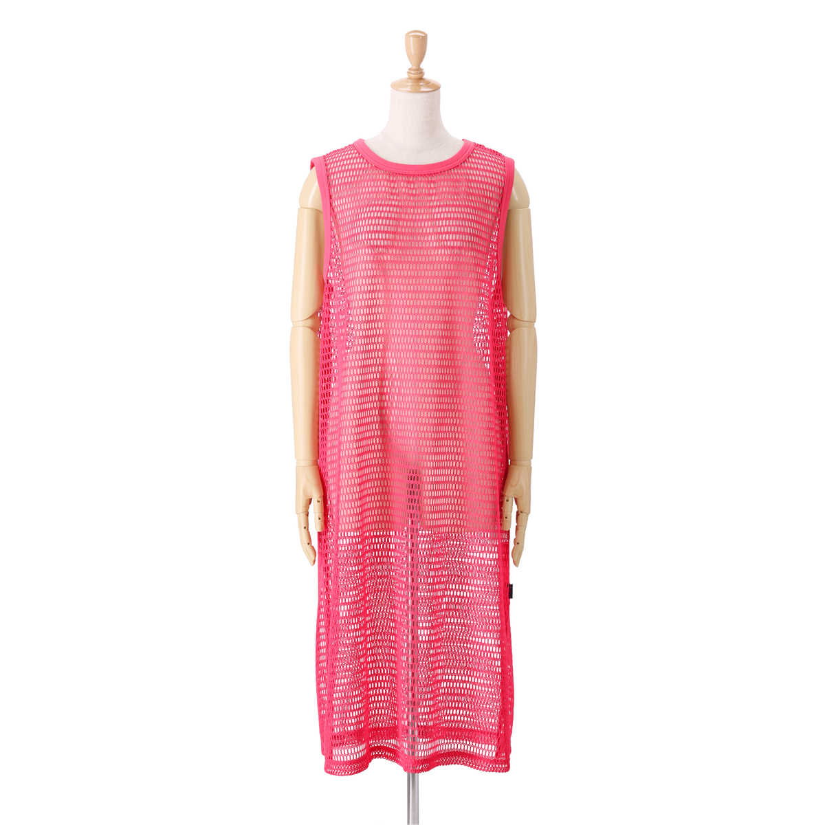 レイヤードコーデに活躍してくれるフィッシュネットを使用したワンピース。脇にスリット入りのシンプルなAラインシルエットで、パンツにもスカートにも合わせやすいデザインです