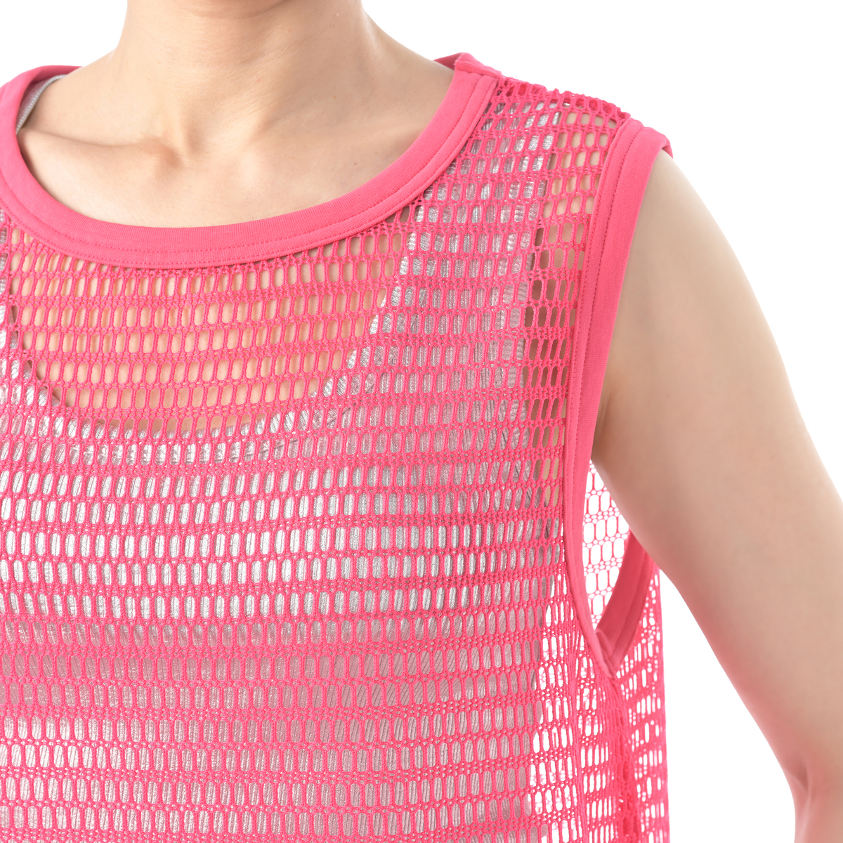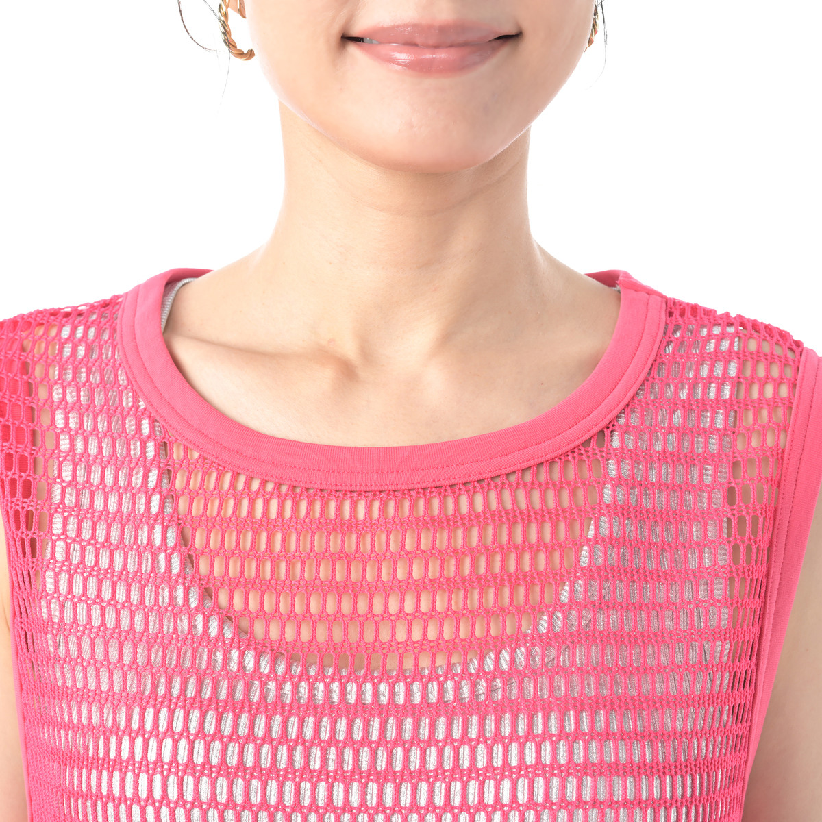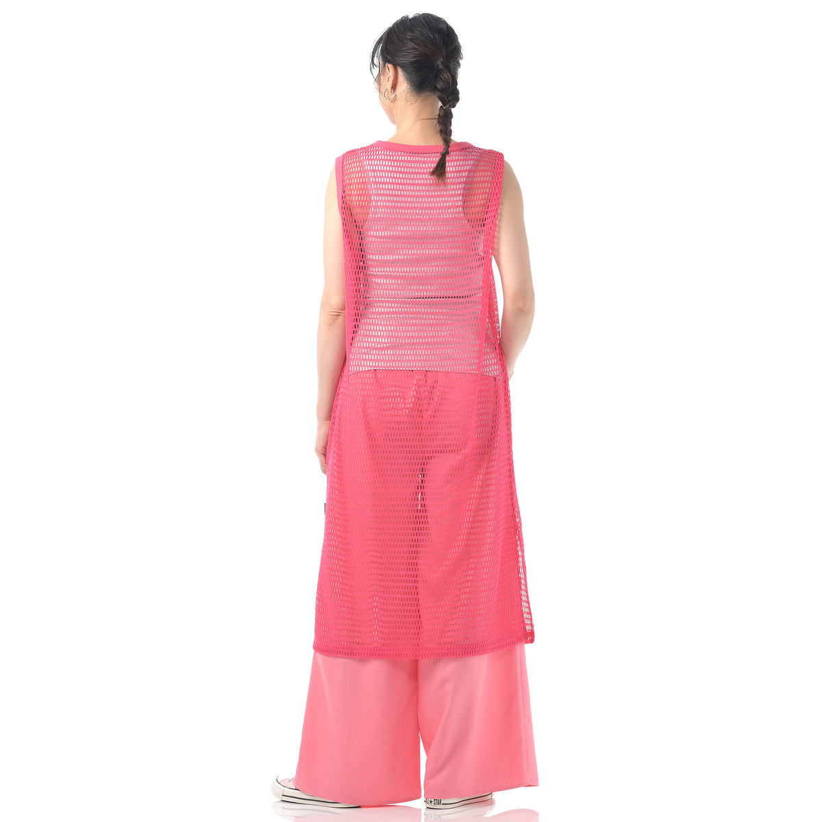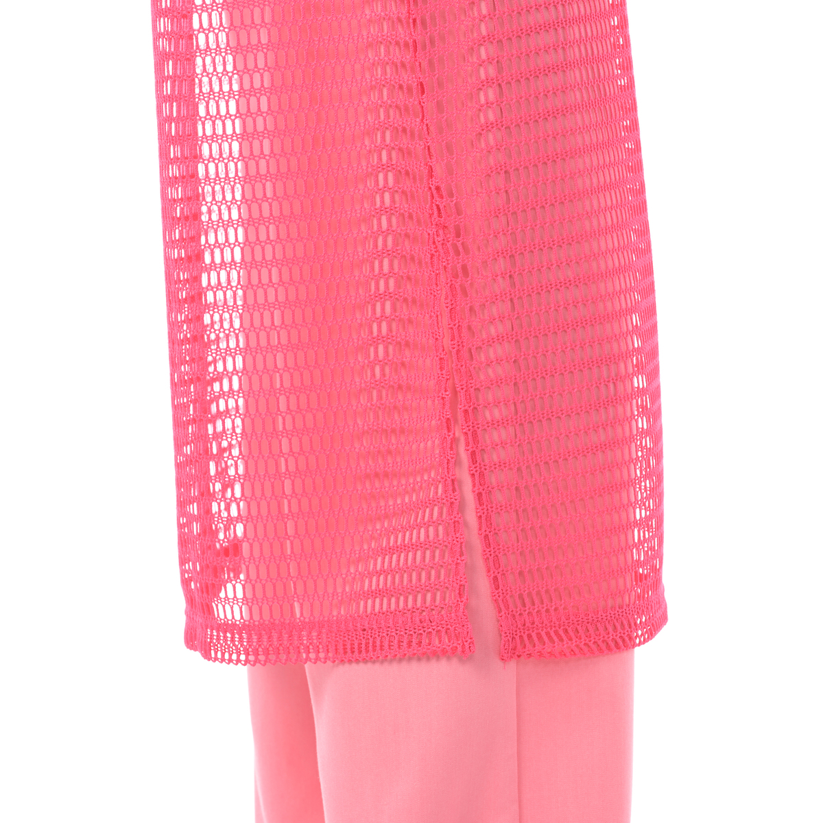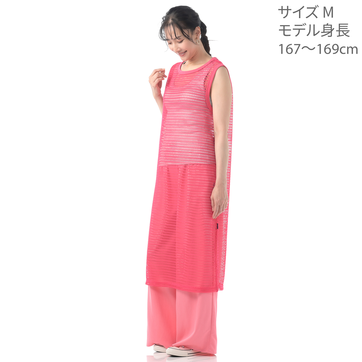 レイヤードコーデに活躍してくれるフィッシュネットを使用したワンピース。脇にスリット入りのシンプルなAラインシルエットで、パンツにもスカートにも合わせやすいデザインです