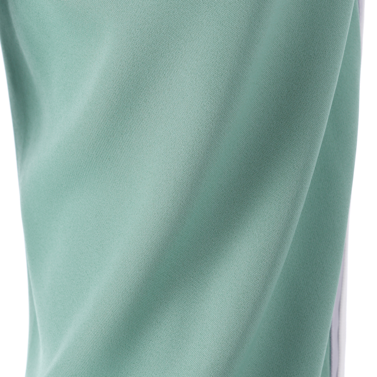程よくハリ感のあるツイル調生地を使用。サラッとした肌あたりの良い素材感です。サイドライン部分は同生地で切り替えて、その上からニットテープをたたきつけました。裾ボタンはいくつか外して、カラーソックスなどをチラ見せするのもおすすめです