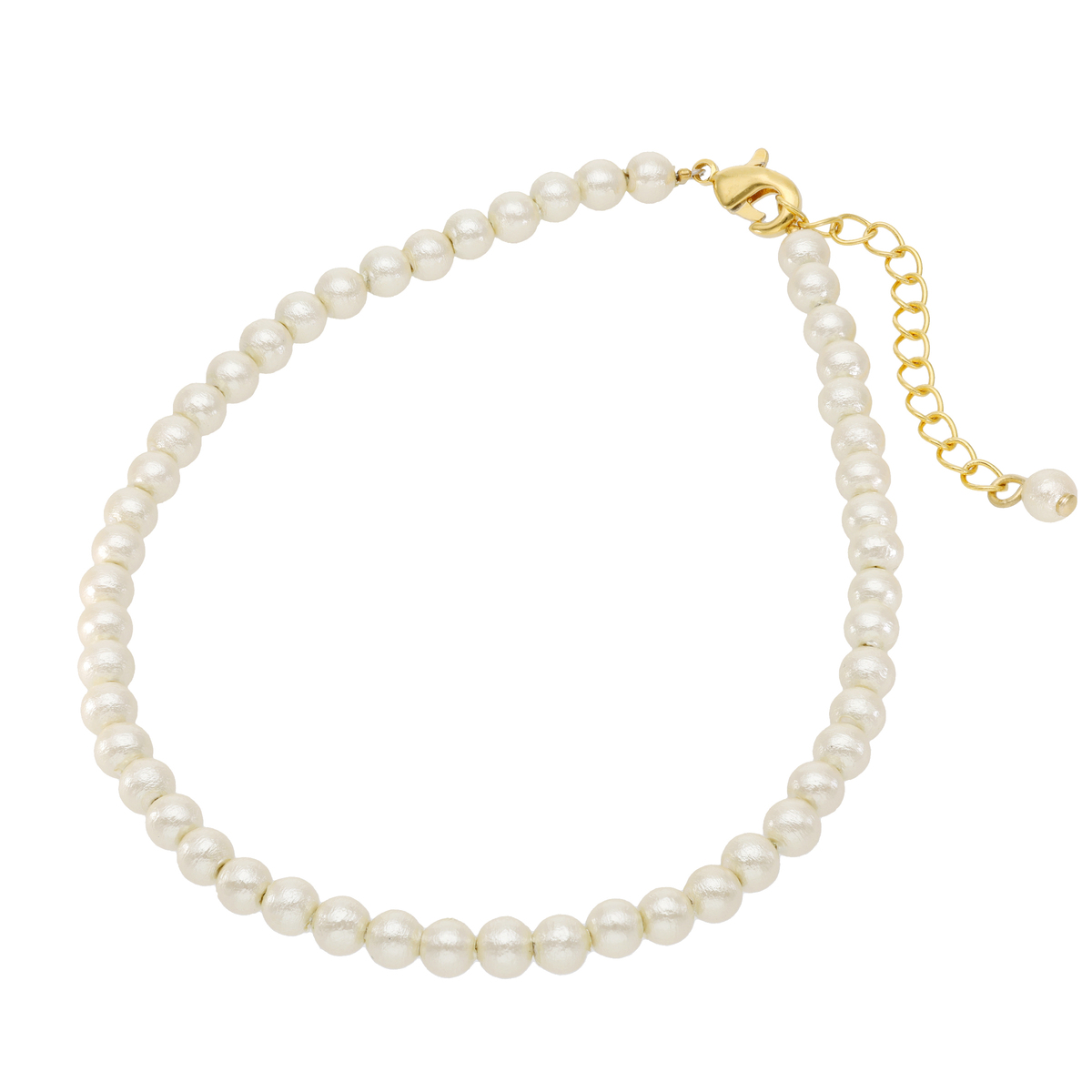 コットンパールの中でも小さい4mmサイズを使用したアンクレット。優しい風合いや素材の軽さが特徴です。重さへのストレスが少なく、近年多くの方に人気のパールです