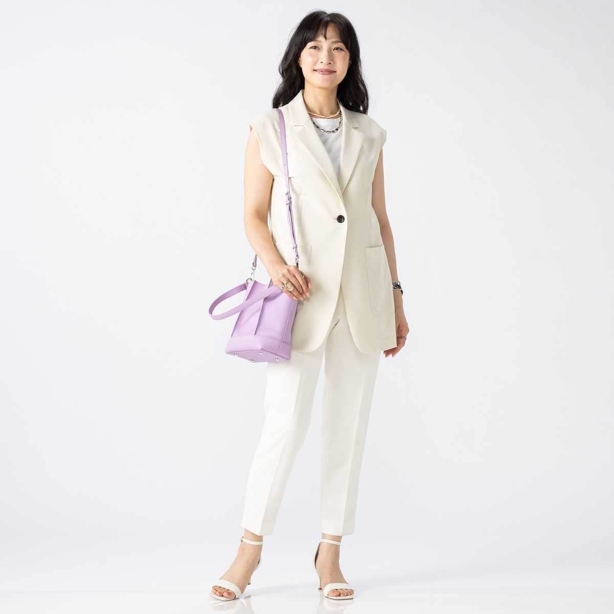 開口部は荷物の取り出しがしやすい隠しマグネット仕様。内側には着脱が可能な巾着袋付きで小物の収納も便利に。マチがたっぷりあるので見ため以上に収納力があり、長財布やスマホもしっかり収納できるサイズ感です