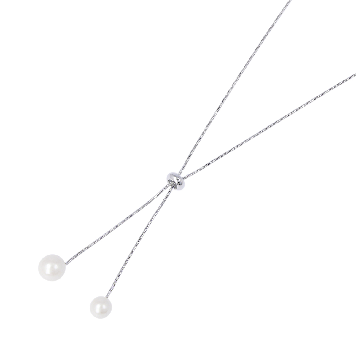 チェーンに繋がる大小のパールビジューが、上品な印象のY字ロングネックレス。チェーンメインにシンプルに仕上げました