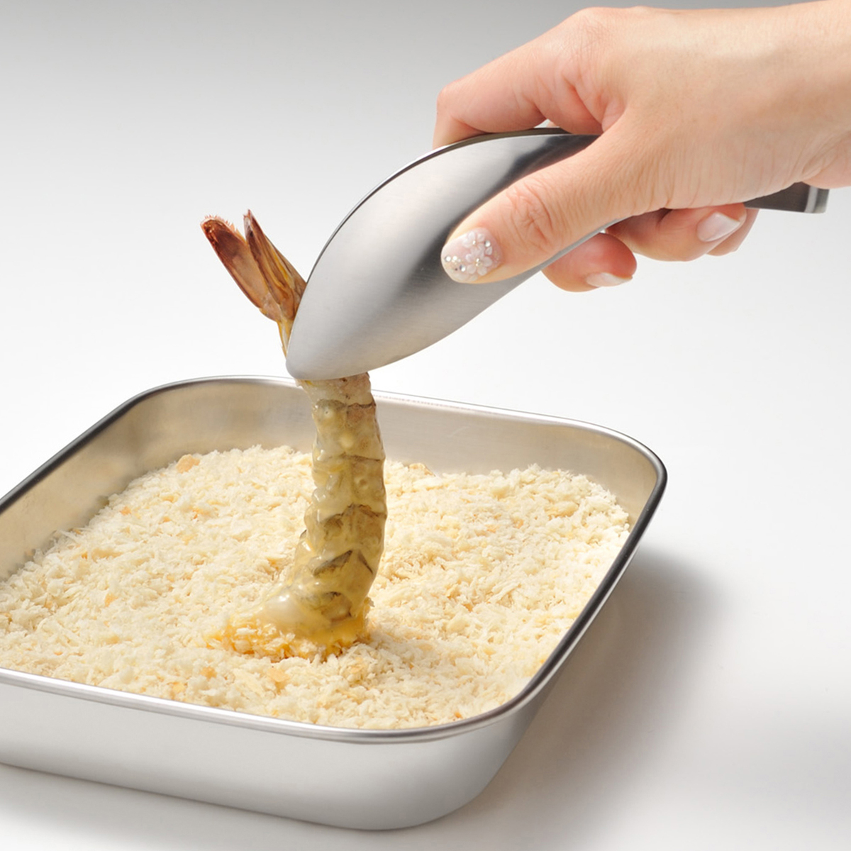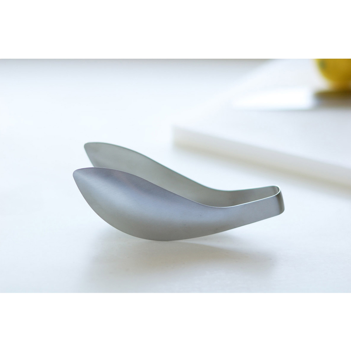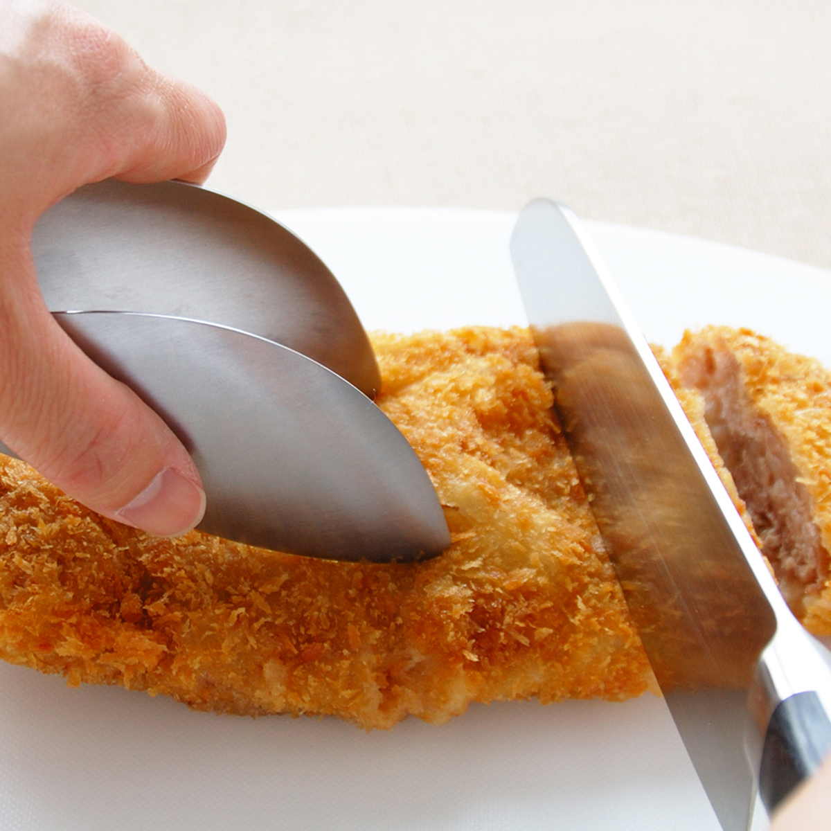 指のかわりに食材をつかんでくれるトング。独自の加工でやわらかなバネ性を持たせ、自分の指のような感覚で自然に使えます。また、逆さにして置けば、先端が浮く設計で、テーブルに付かないのもポイントです