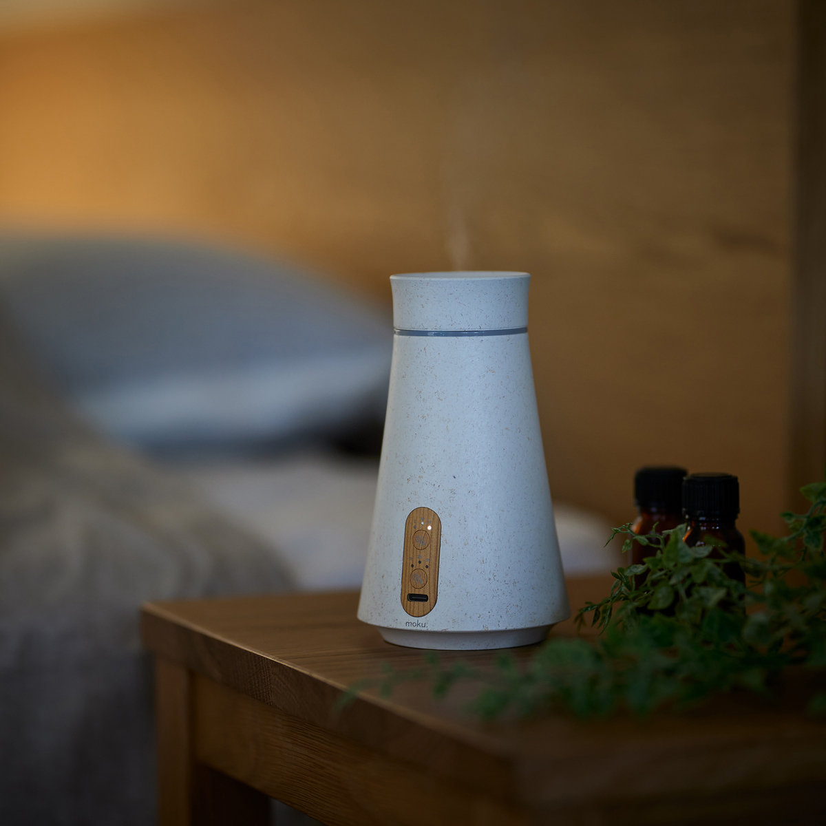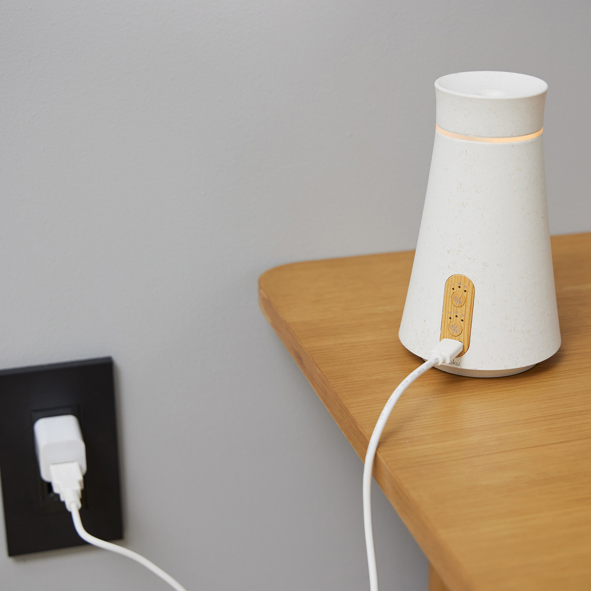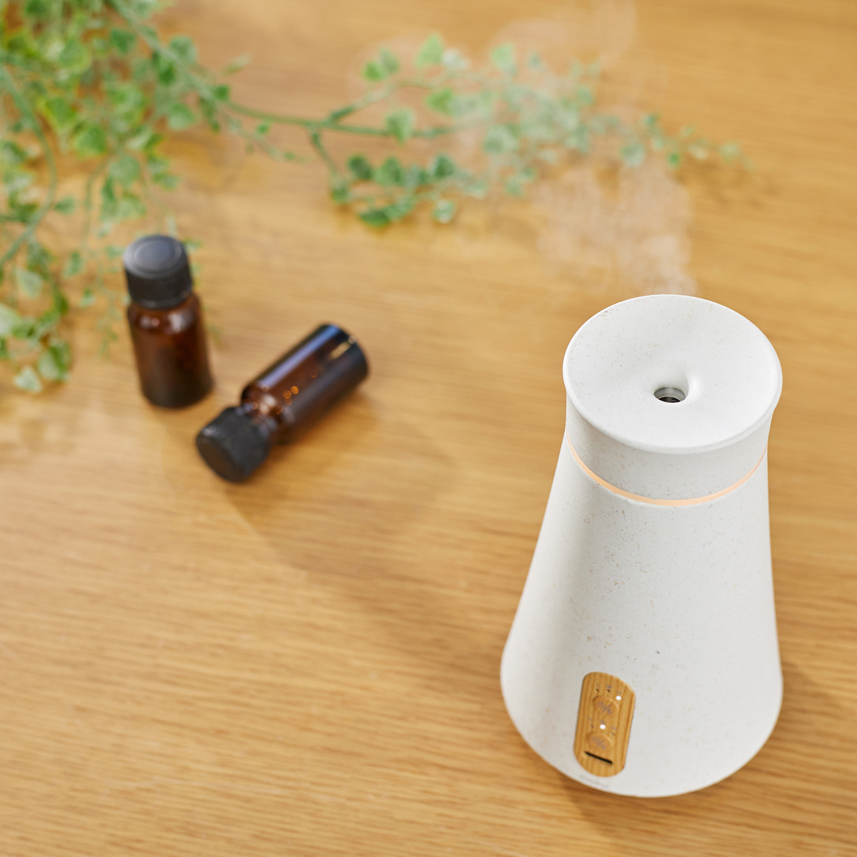火や水を使わずにエッセンシャルオイルの香りが楽しめるアロマ噴霧器。噴霧式の特徴として水は使用せずエッセンシャルオイル*1のみを噴霧。また充電式のコードレスタイプで、デスクや玄関、脱衣所など、電源のない場所でも使えます