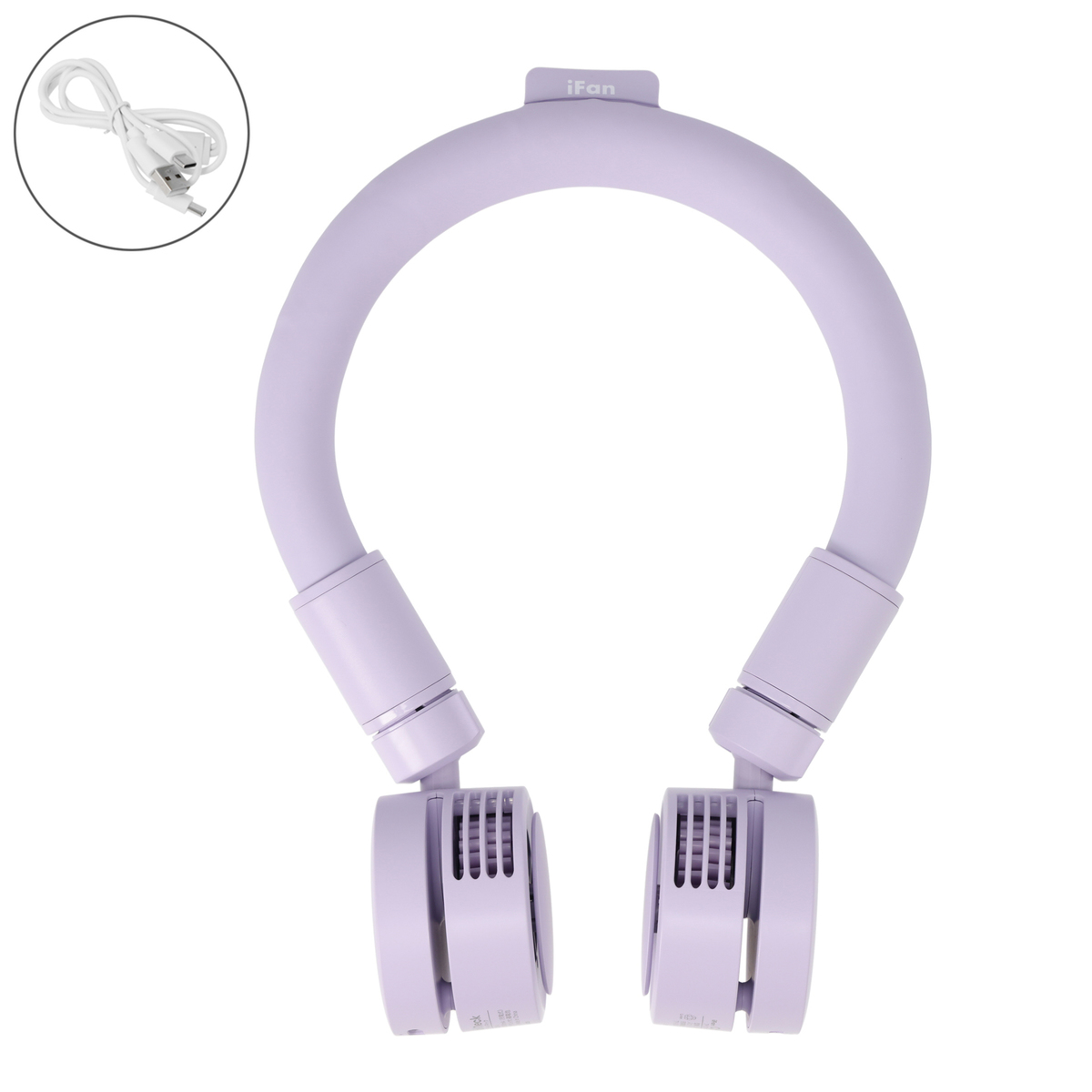 相方はミント色 私はパープル色にしました こちらによく合うQVCのキシリトール加工接触冷感UVヒンヤリナロースカーフ(ラベンダー色)をヘアバンドのようにして QVCの着る虫よけアームカバー(パープル色) 手持ちのマルチウェイUVポンチョストール(ラベンダー色)を羽織って繰り出せば まるでパープルクールフィールルックでとても快適 ブレードレスデュアルファンが 思っていたより冷たく感じられ 凄く良いですね 単独でも使えるネックリングは 冷凍庫で冷やしてもそこまで冷たくなく 持続時間も短めだけど ファンと合わせて使えば 程よい心地よさです この夏 家でも外でも大活躍間違いなしの アイファンクールネックですよ