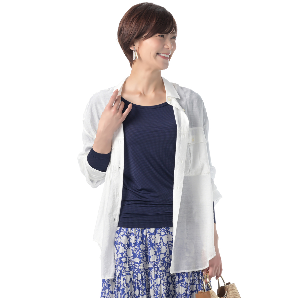 半袖の上にシアー素材羽織るよりよほど涼しいです。来年はもう少し襟を詰めてお願いします。タートルネックもいいです。楽しみです。お値段ももっとお安くです。