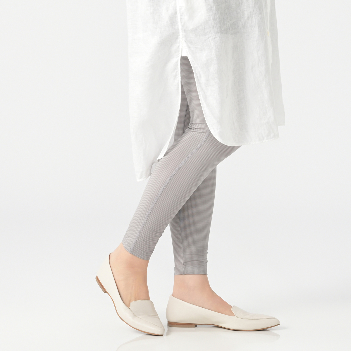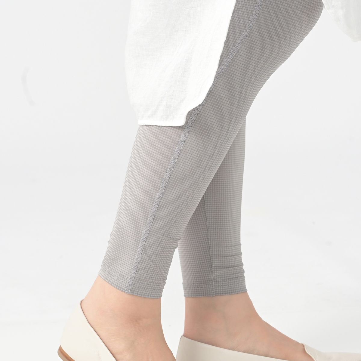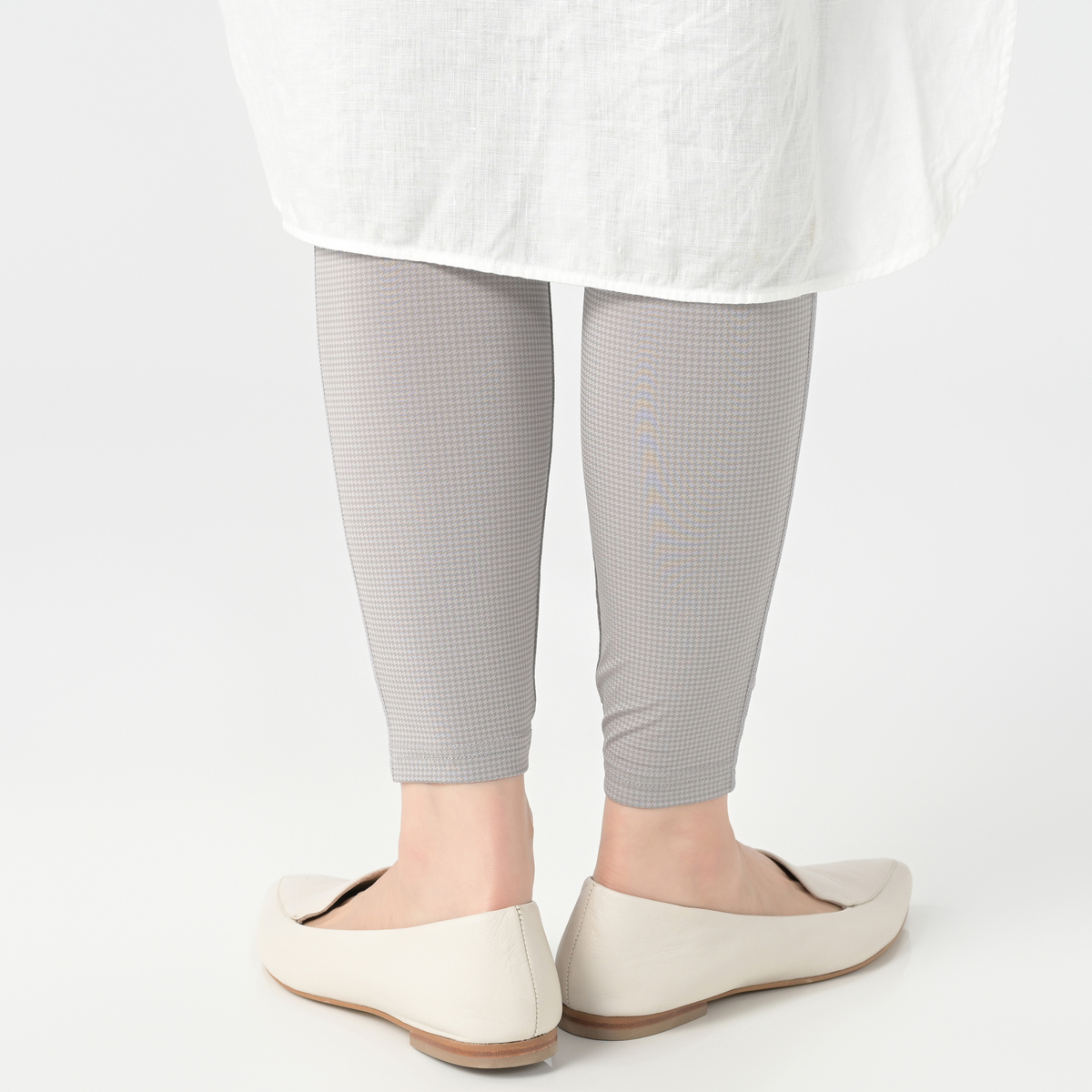 ブラックではあまりわからなかったのですが、グレーは千鳥柄丸出しで好みではない。丈が少し長いので折り返すとテカテカ。ブラックもテカテカですがまだ許容範囲です。夏用の色々なレギンス履いてきましたが1番マシだとは思います。でもこのお値段なのにウエストのゴムがねじれるのは生地にお金がかかってるからと手抜きを感じる。グレーは好きだけど好みじゃない千鳥柄が目立つのは我慢できないのでグレーはお返しします。