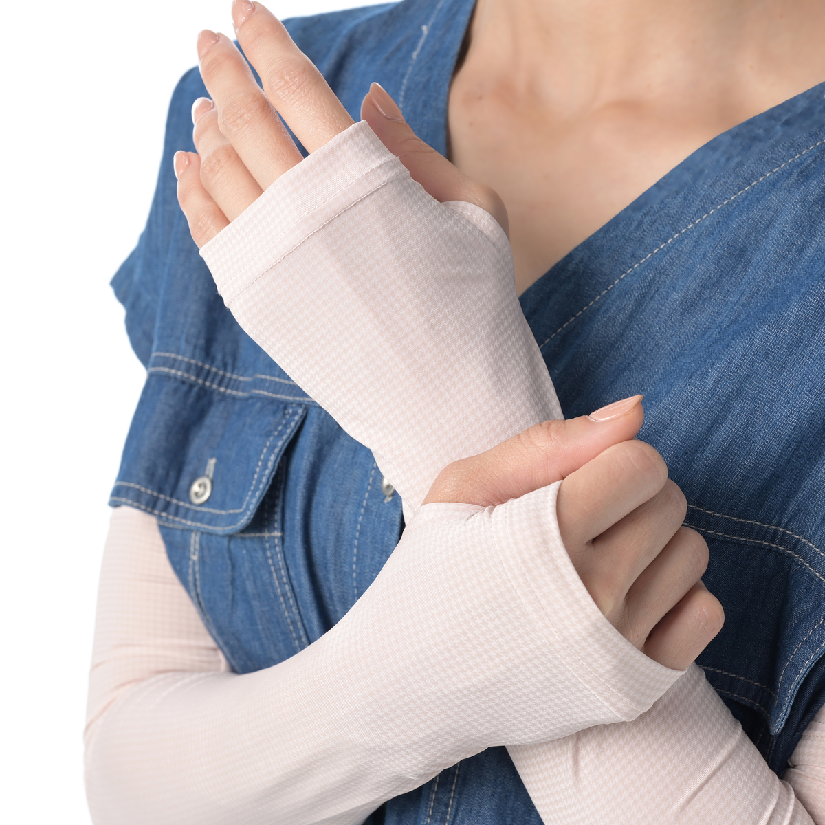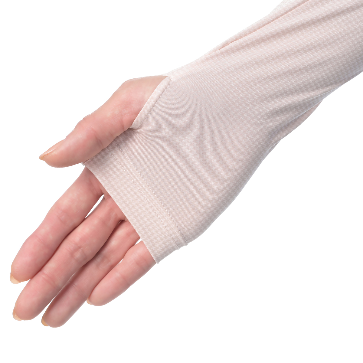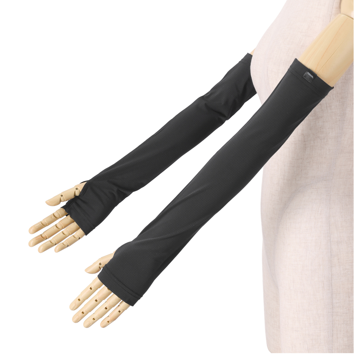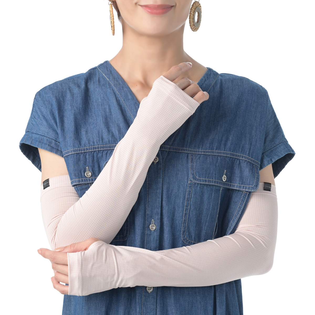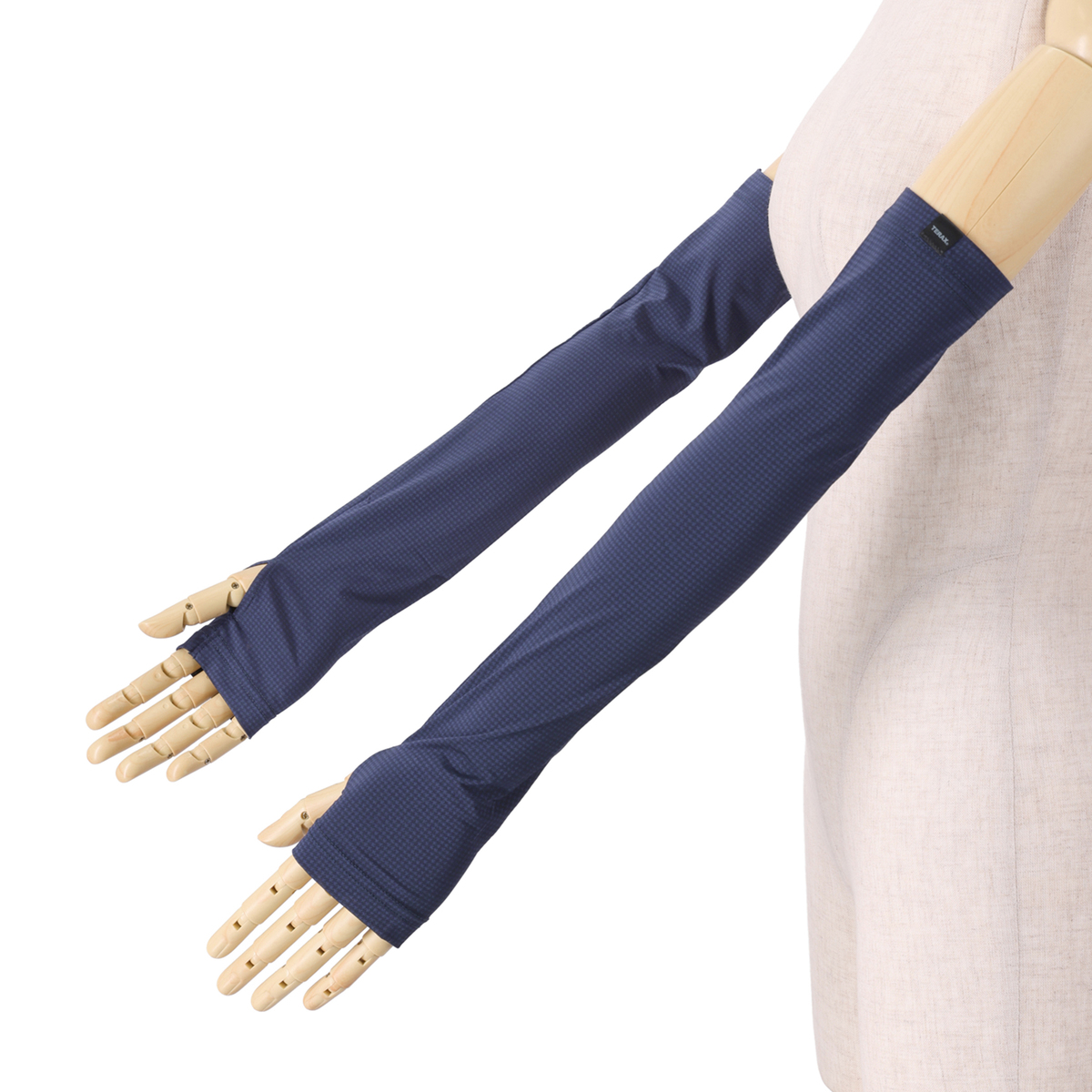 ひんやりの冷たい生地でサラッとしていて気持ちがいいです。ただフェイスカバーも買いましたが、こちらも生地が薄くて紫外線カットがあるのどうか、説明にはひんやりのことしか書いていないので無いのですよね。長さも親指を通すとその上の部分が短く4本の指が丸見えで日焼けしてしまいます。二の腕の部分も短いので日焼けが心配です。このお値段ですと長さや紫外線カットが高いのを期待しますが、割高と思いました。生地が柔らかいのでそのまま使いますが。