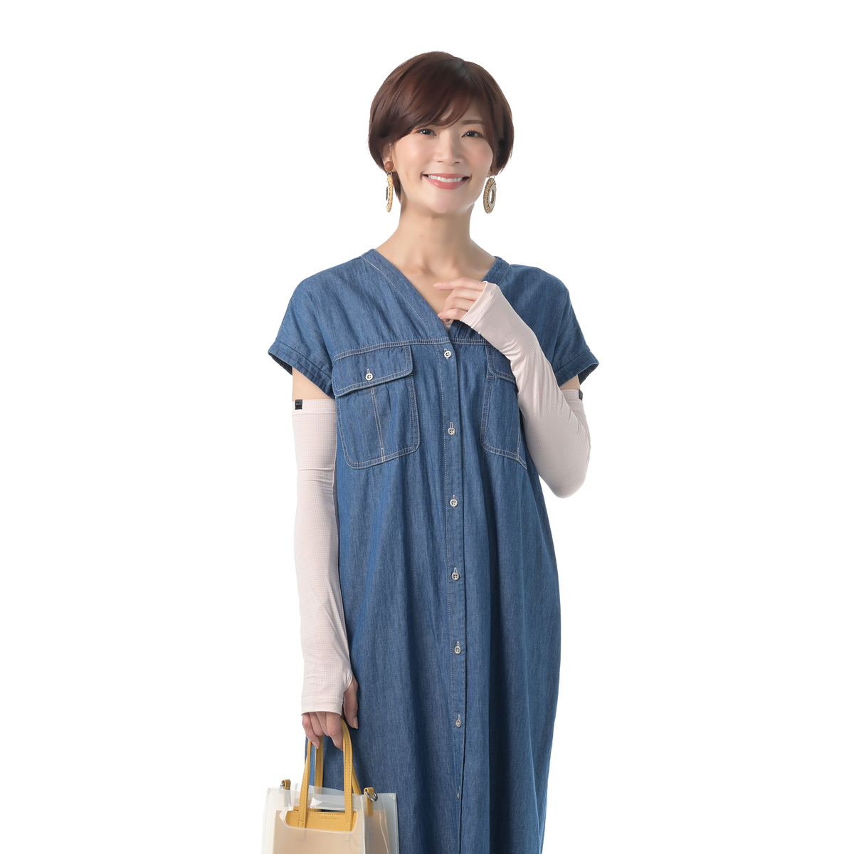 一番気にしていたのは着用したときに二の腕から肘に向かってズルズルと落ちてこないかということでした。そんなことは全然ありません。生地も薄くサラッとしていて、その上涼しいです。車を運転するときの必需品にします。