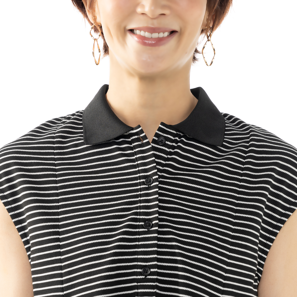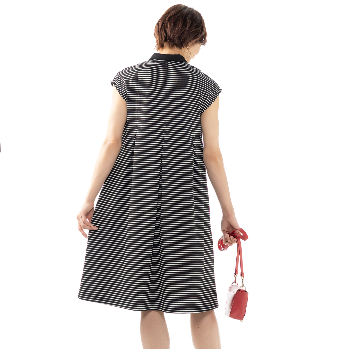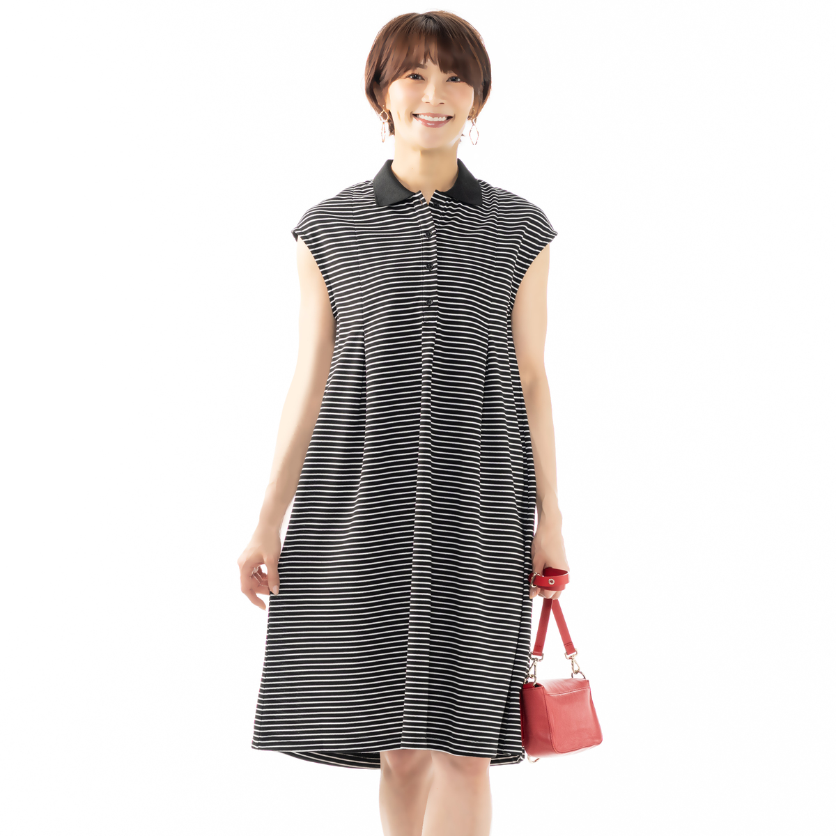カジュアル感がありながらもフェミニンに着こなせるポロワンピース。前身頃にタックを入れることで美しいシルエットを生み出し、体型もカバー。前立てのボタン開きが縦ラインを強調し、すっきり見せてくれます