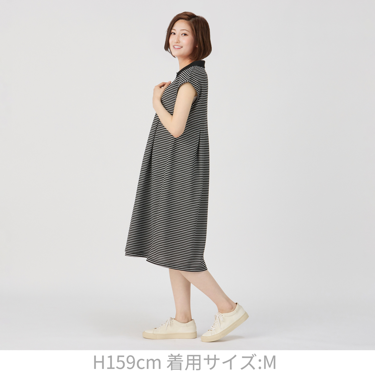 ポロワンピなんだか懐かしくて買っちゃいました。サラサラの生地で肌あたり良くて夏にも着やすそう。159cmでSかMかいつも迷い、Mにしたのですが大きかったのでSに交換してもらいました。 ギャザーがたっぷりあって風を通して涼しげだと思うのですが、ややマタニティっぽいです。横から見るとお腹と腰のあたり大きく見えるかも。もう少しギャザー減らしたシンプルなAライン(でも身体のラインは拾わない)的なポロワンピがあるといいなぁと思いました。あと、もっと明るいお色もあると嬉しいです。