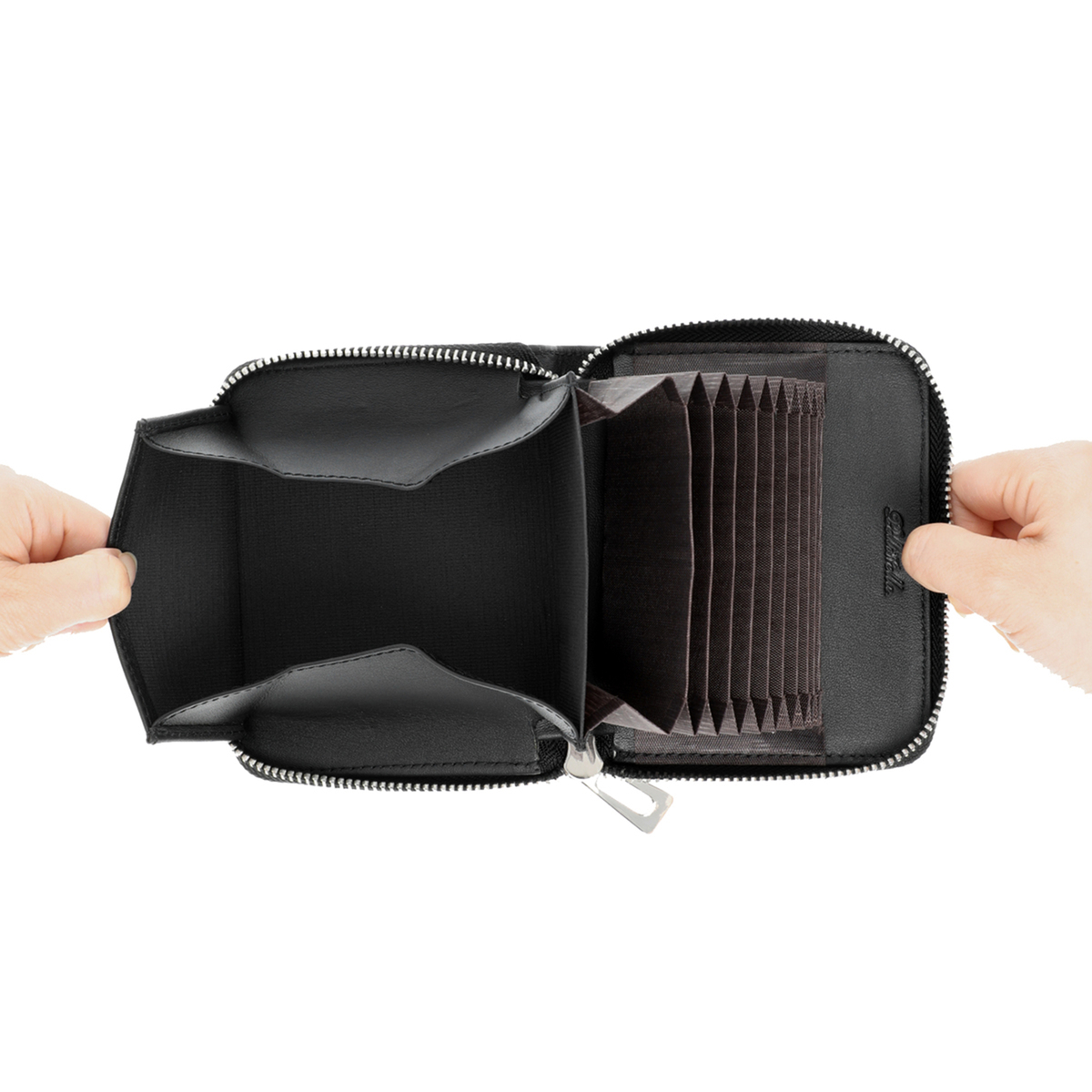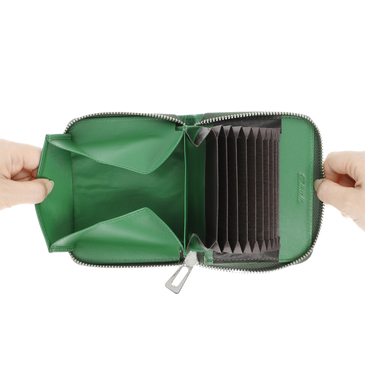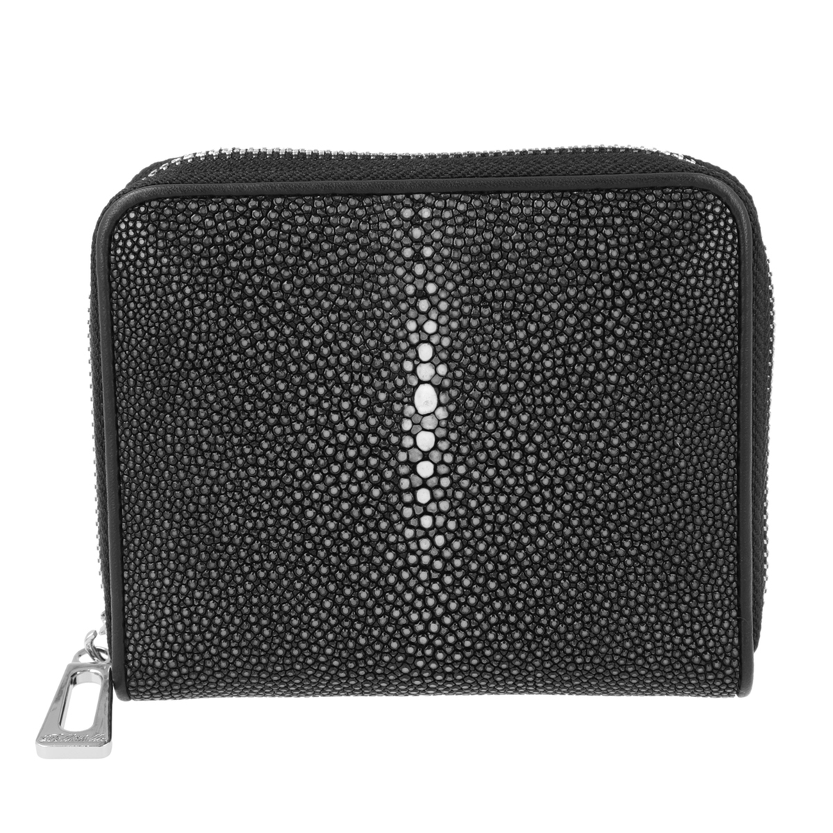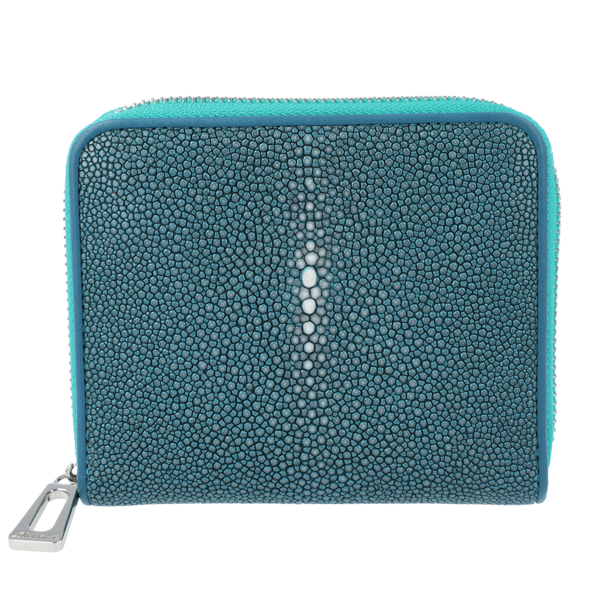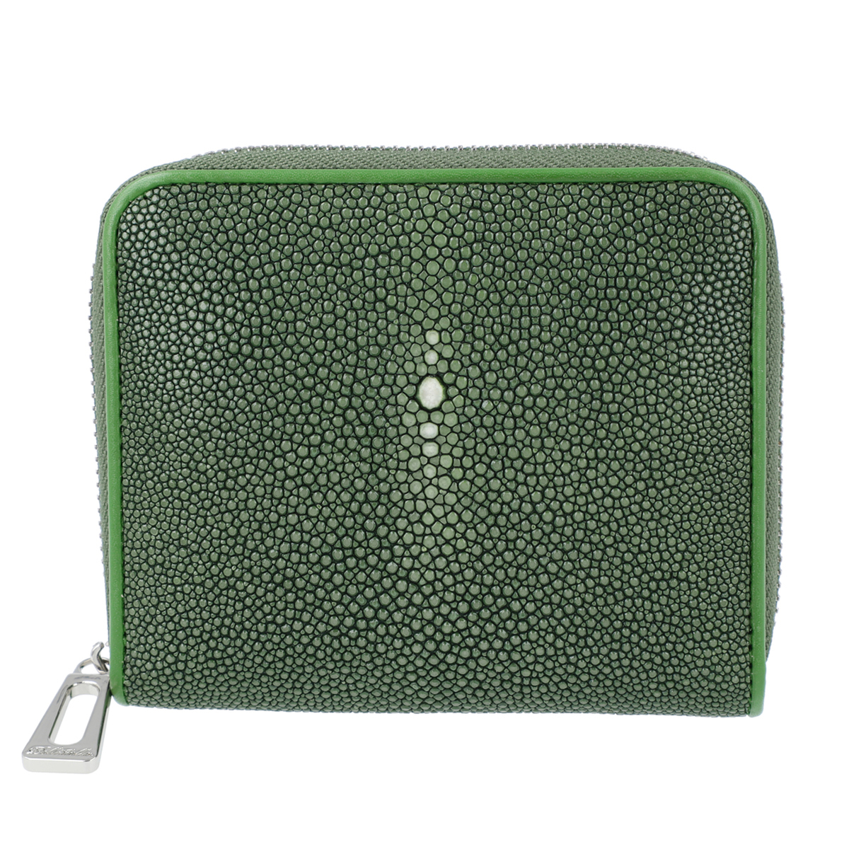 [サイズ(約)] 縦9×横12×厚み2.5cm [重量(約)] 153g [素材] 表地:エイ革 内側:牛革 裏地有 [仕様] 開閉:ファスナー式 [ポケット] 内側:小銭入れx1、札入れx2、カード入れx9 外側:無 【タイ製】