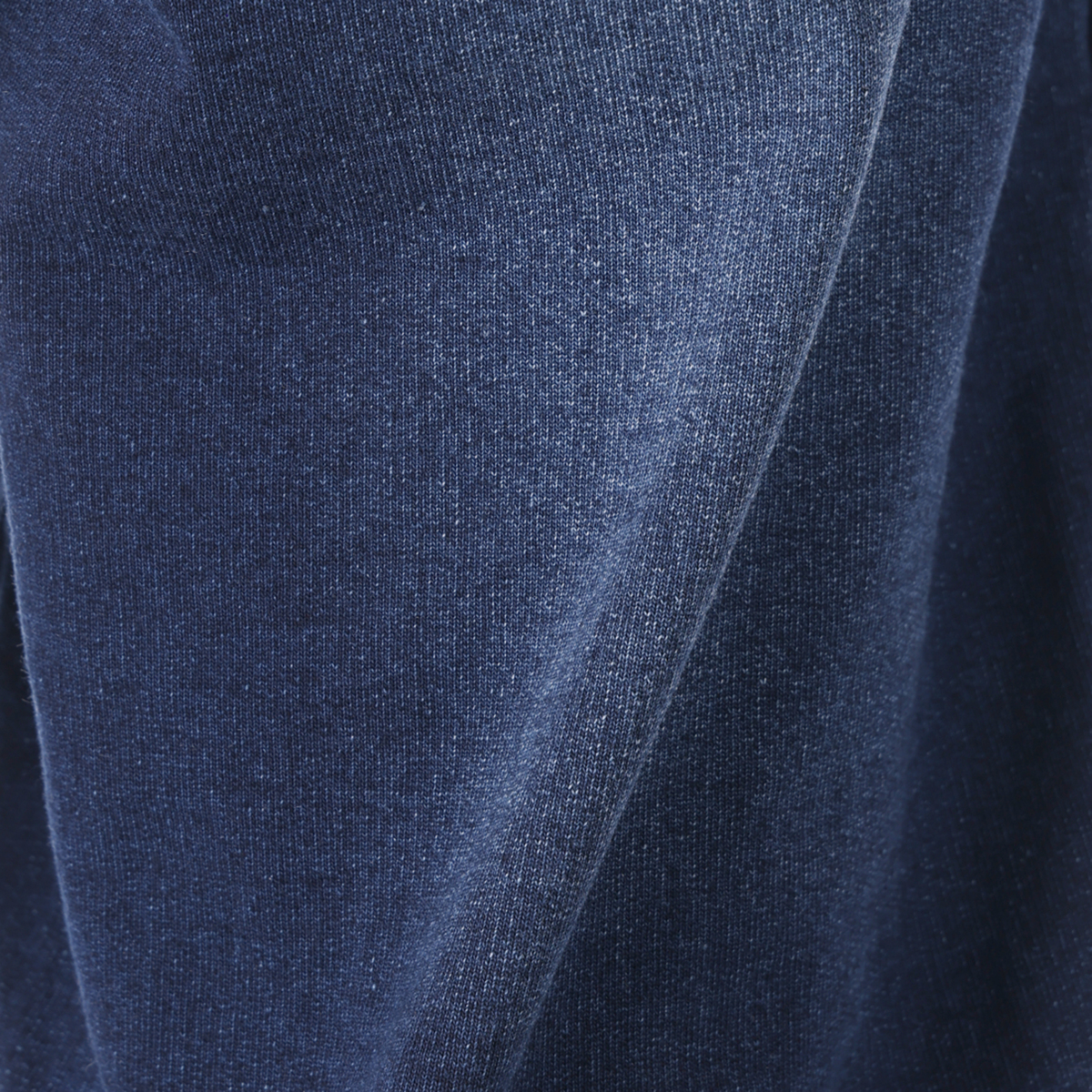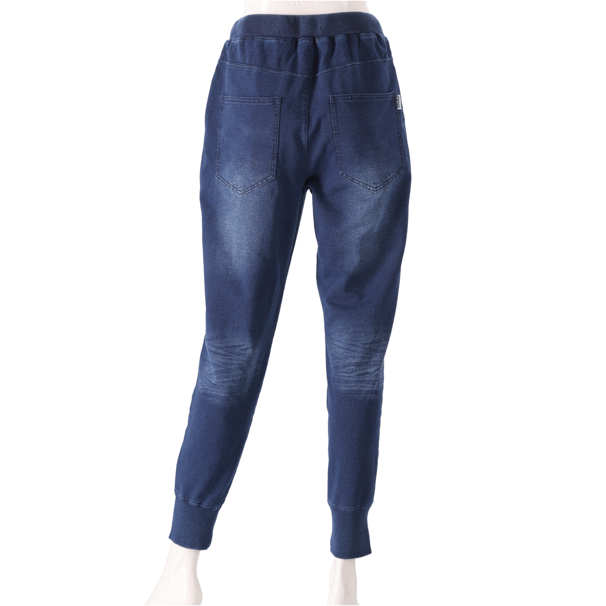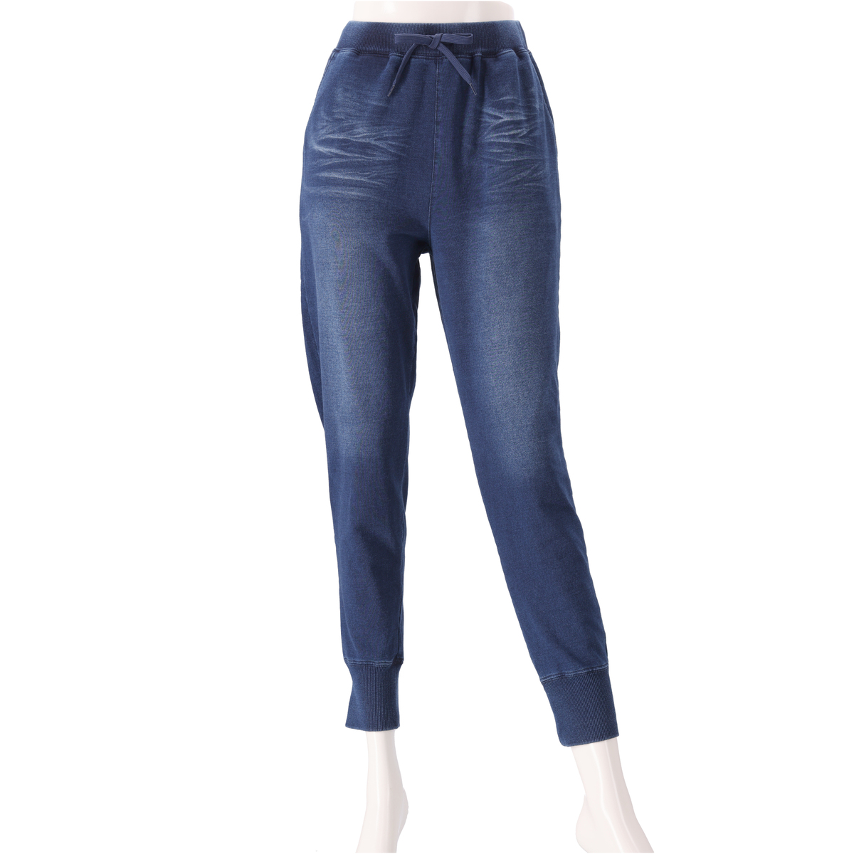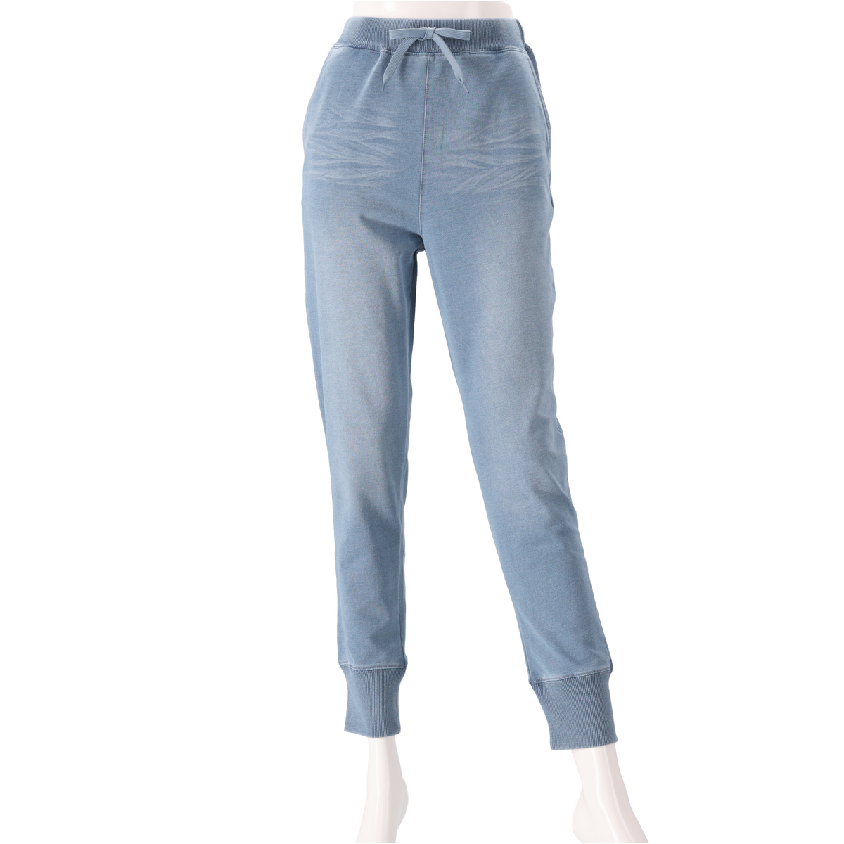 ソフトな風合いのジョガーパンツ。裏毛デニムを使い、製品加工でこなれ感を出しながら、ウエストと裾にはしっかりとしたストレッチのリブを使用してデザインしました