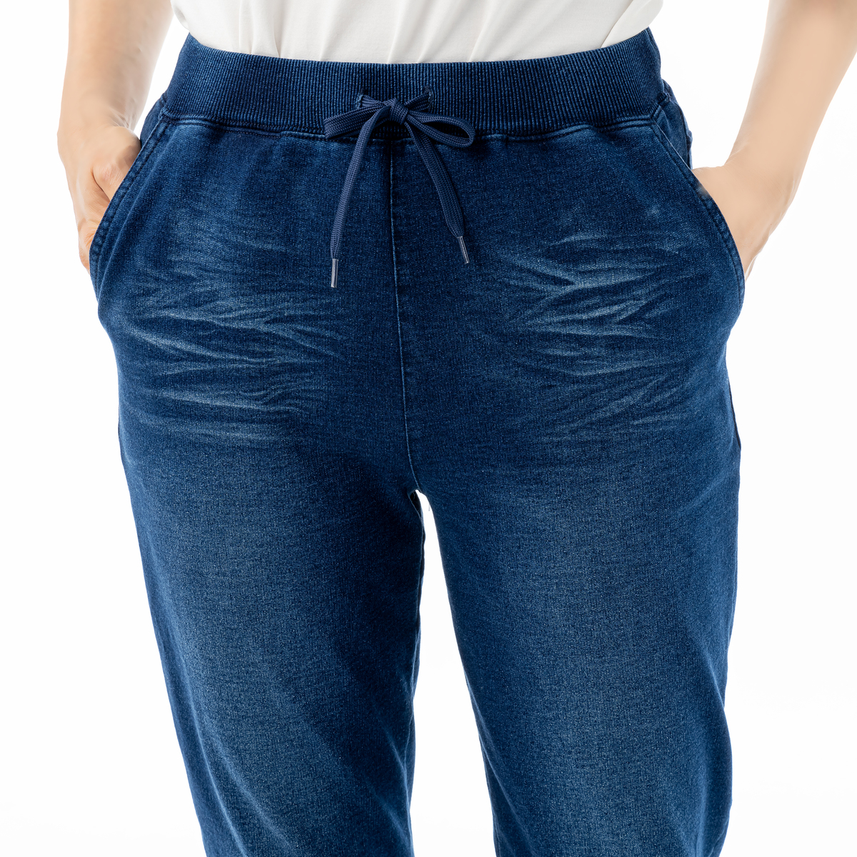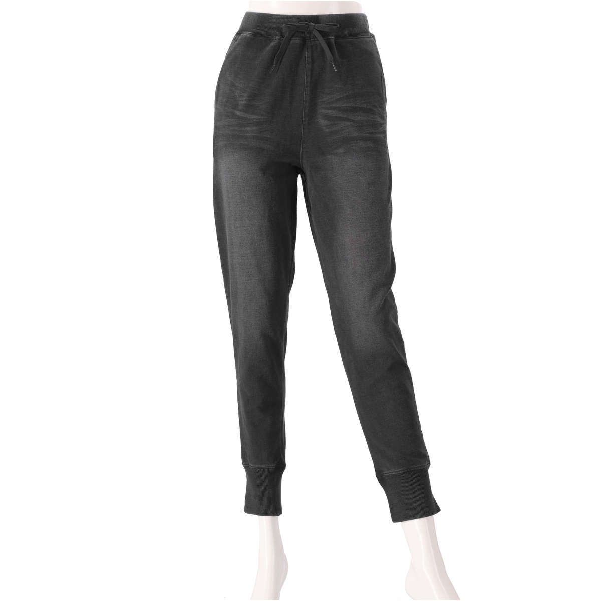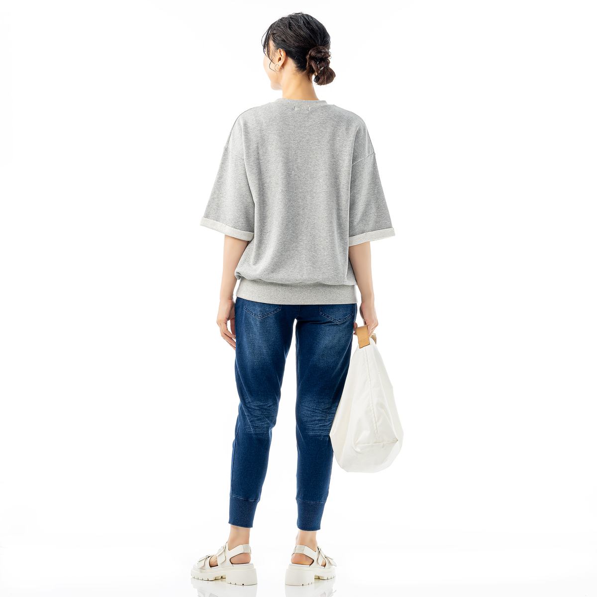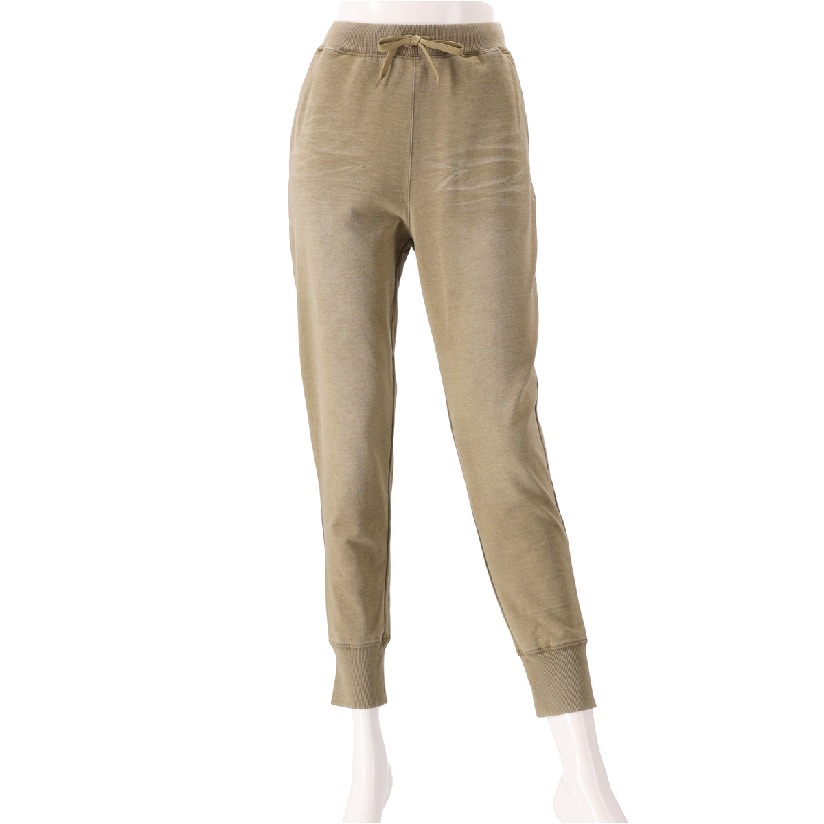 ソフトな風合いのジョガーパンツ。裏毛デニムを使い、製品加工でこなれ感を出しながら、ウエストと裾にはしっかりとしたストレッチのリブを使用してデザインしました