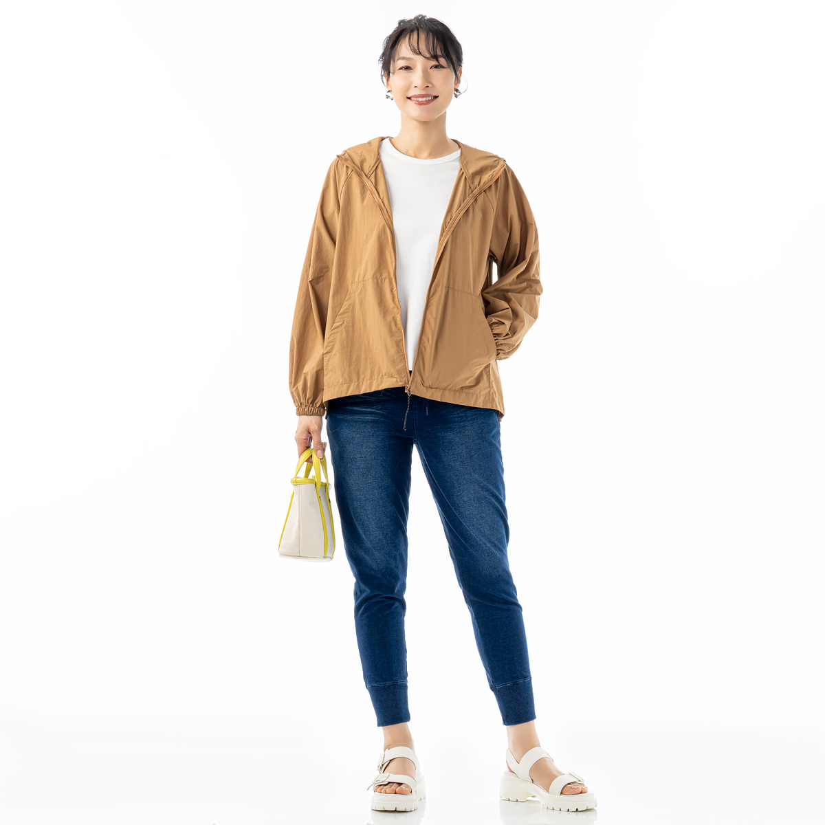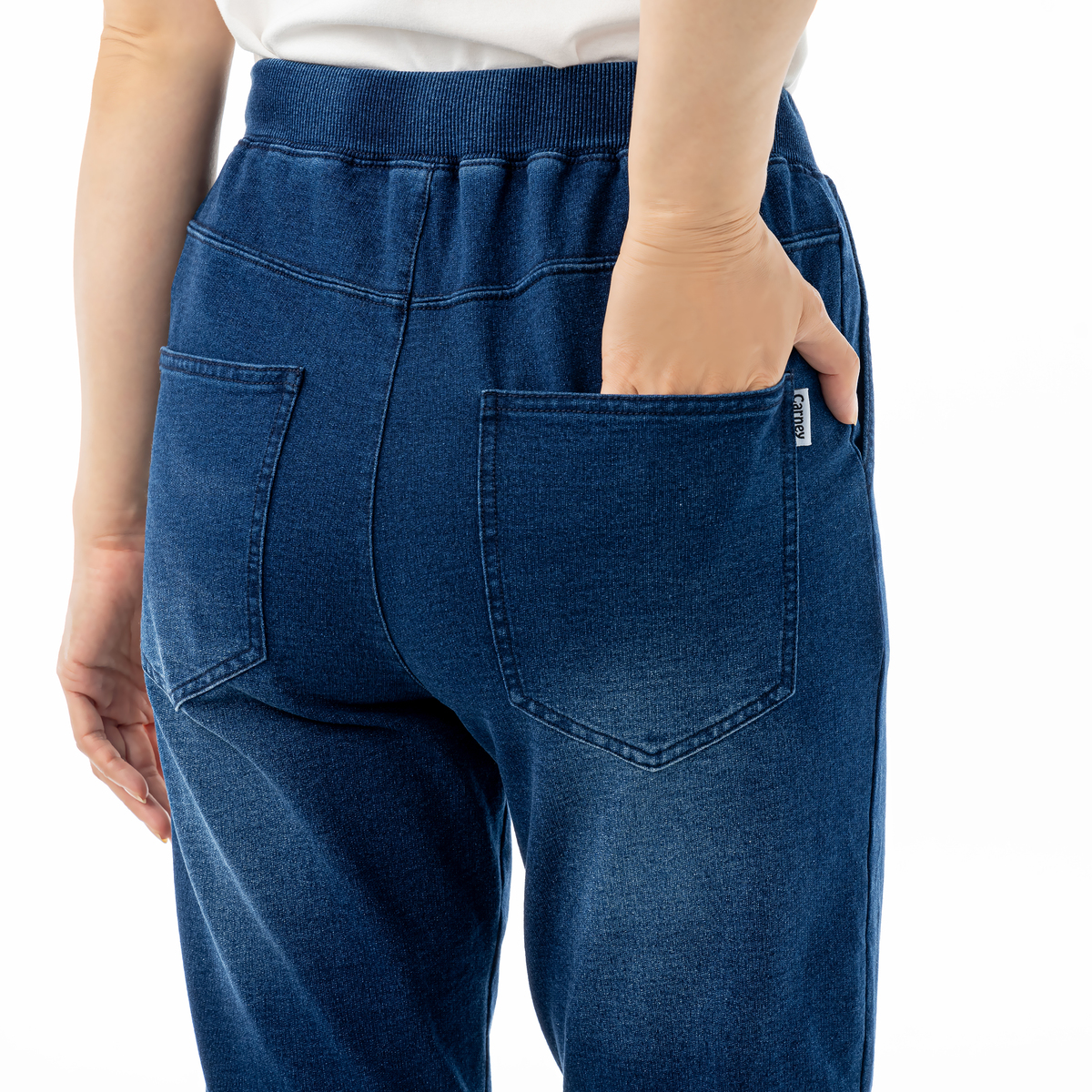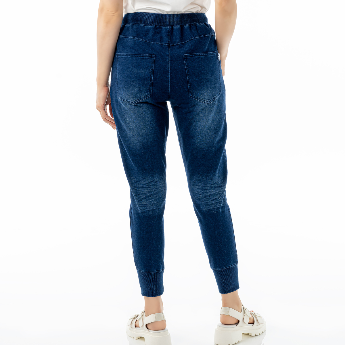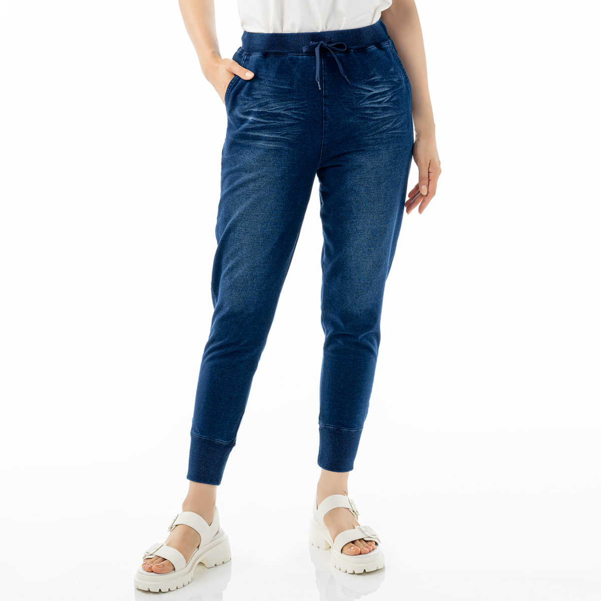 ソフトな風合いのジョガーパンツ。裏毛デニムを使い、製品加工でこなれ感を出しながら、ウエストと裾にはしっかりとしたストレッチのリブを使用してデザインしました