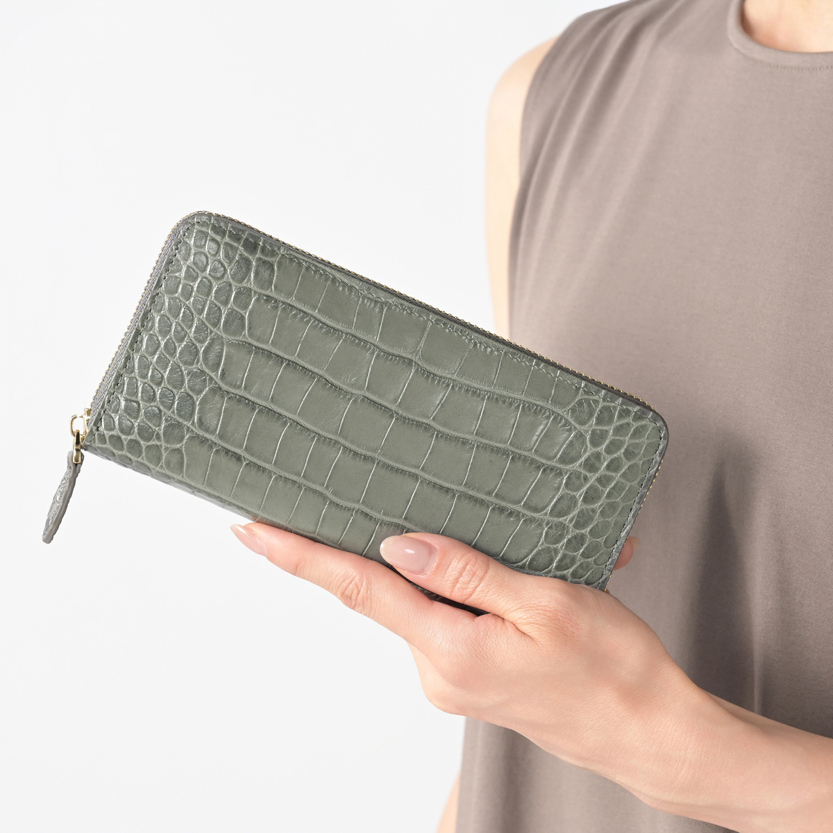 イタリア鞣しのクロコ型押し牛革を使用したロダニアの長財布。リッチ感がありながらも牛革なので普段使いとして気兼ねなく楽しめます